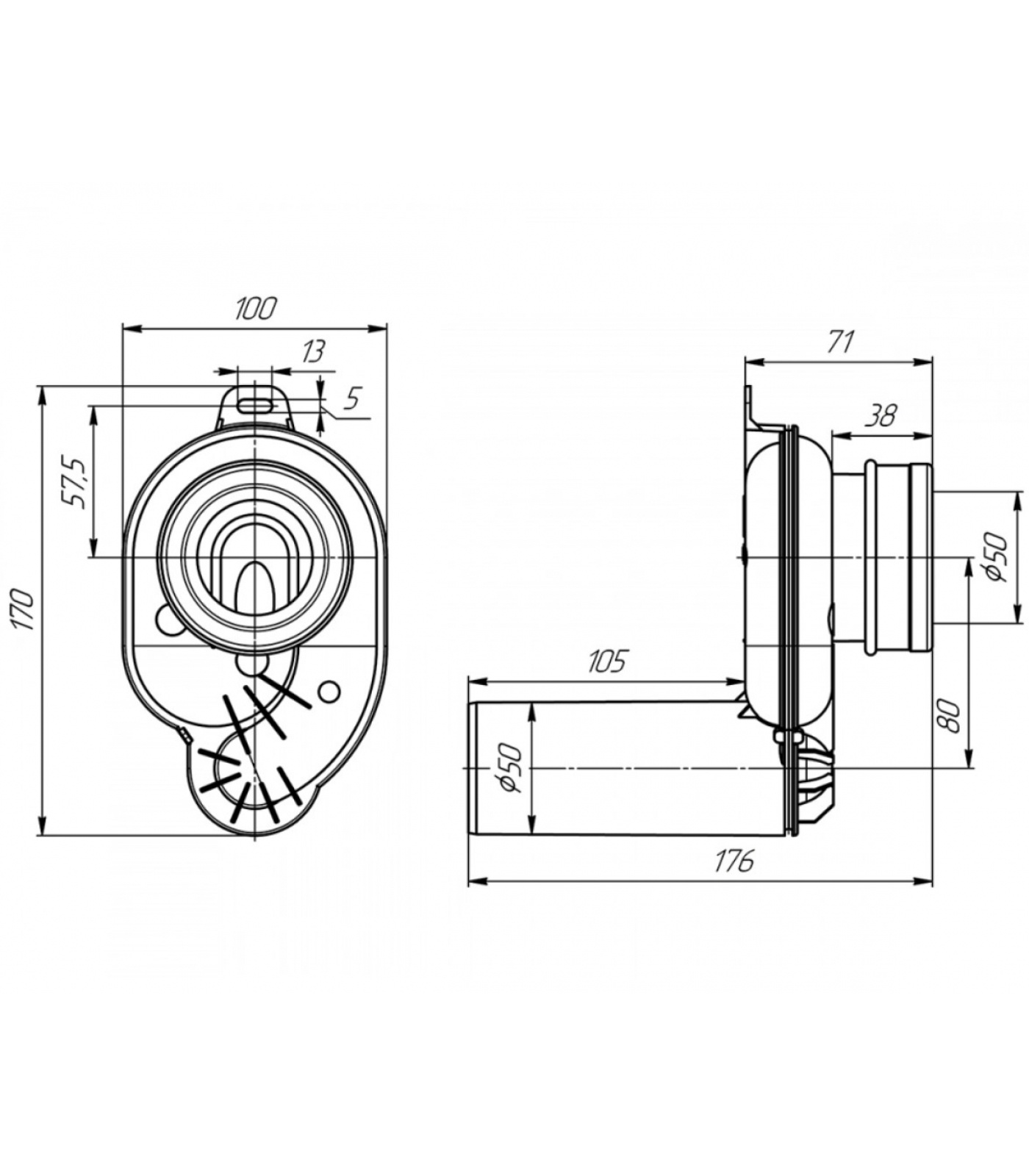 Сифон для писсуара горизонтальный 1.WH30.2.086