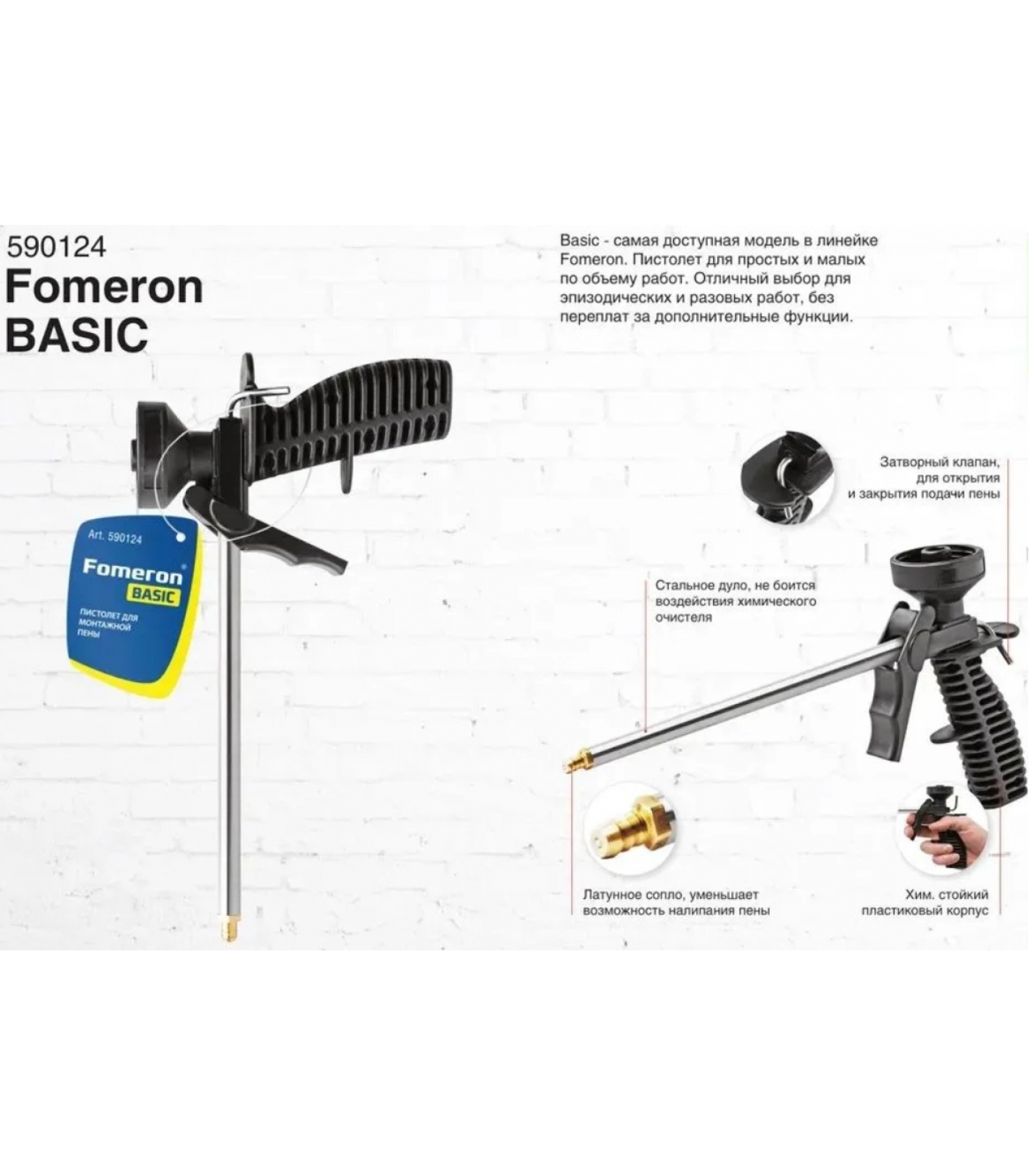 Пистолет для монтажной пены FOMERON Basic служит для заполнения пустот, полостей и отверстий при проведении монтажных работ.