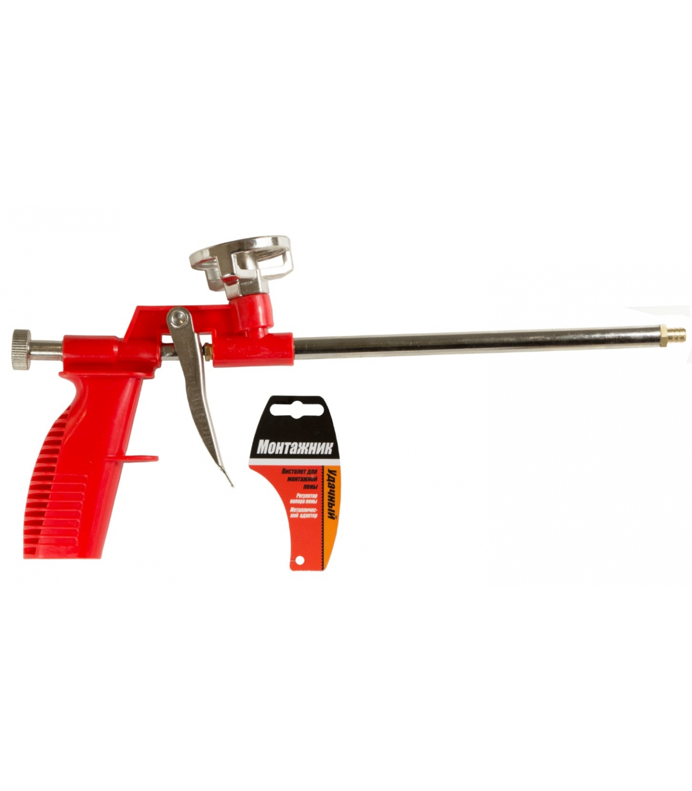 Пистолет для монтажной пены Монтажник Удачный с пластиковым корпусом и металлическим курком и адаптером, небольшой корпус позволяет снизить вес пистолета, что облегчает работу.