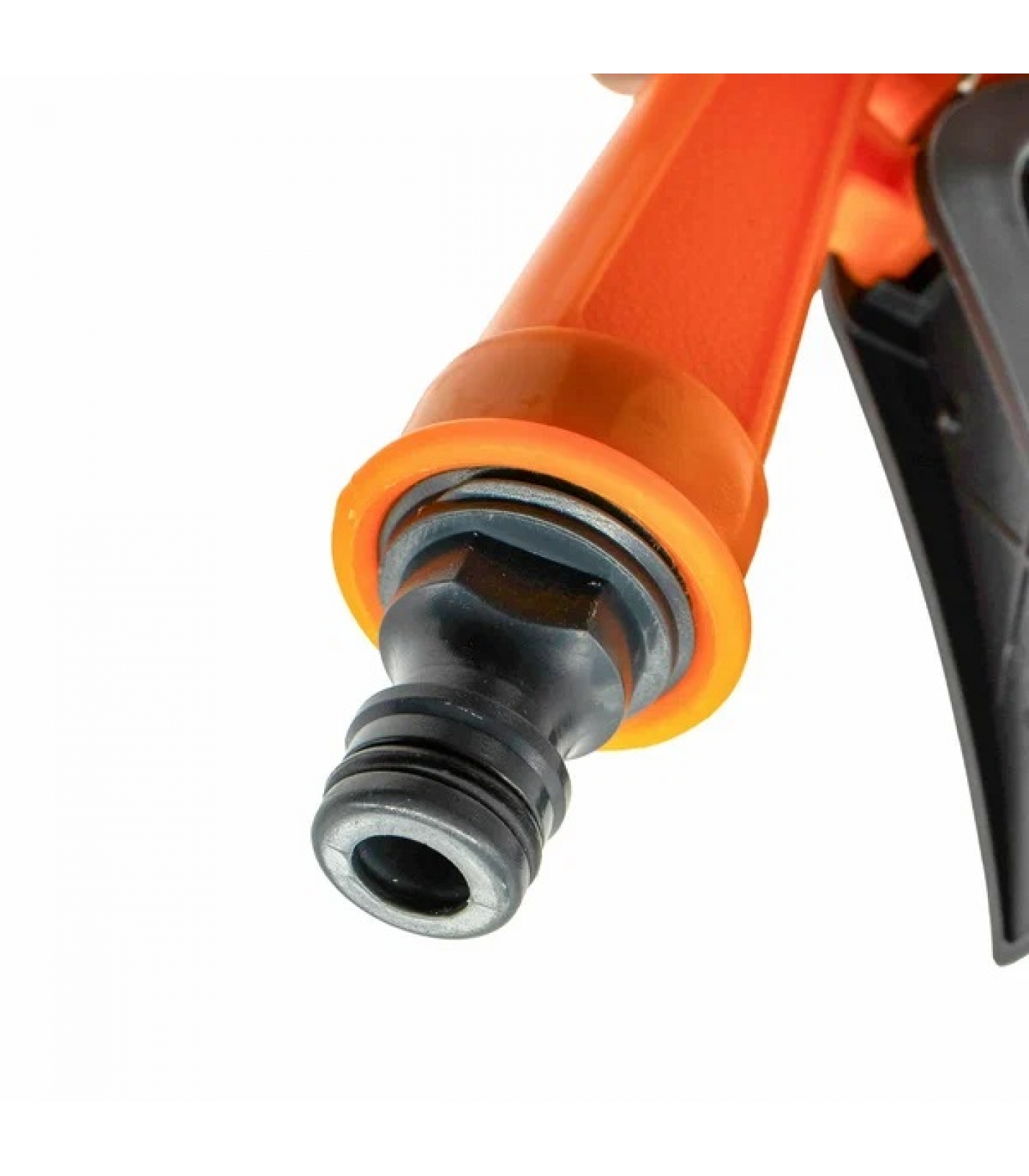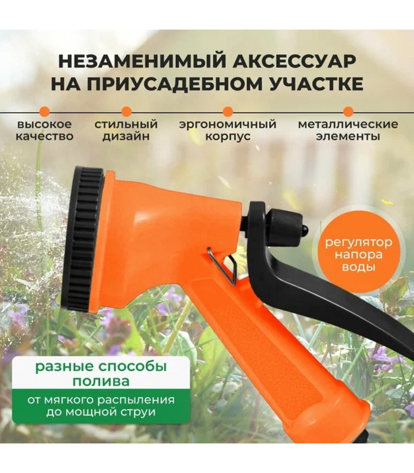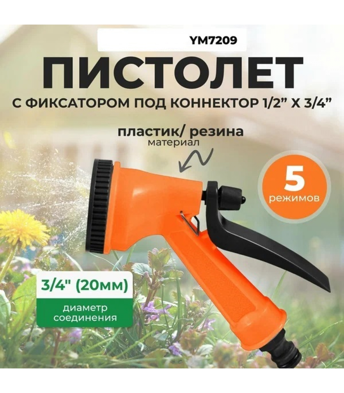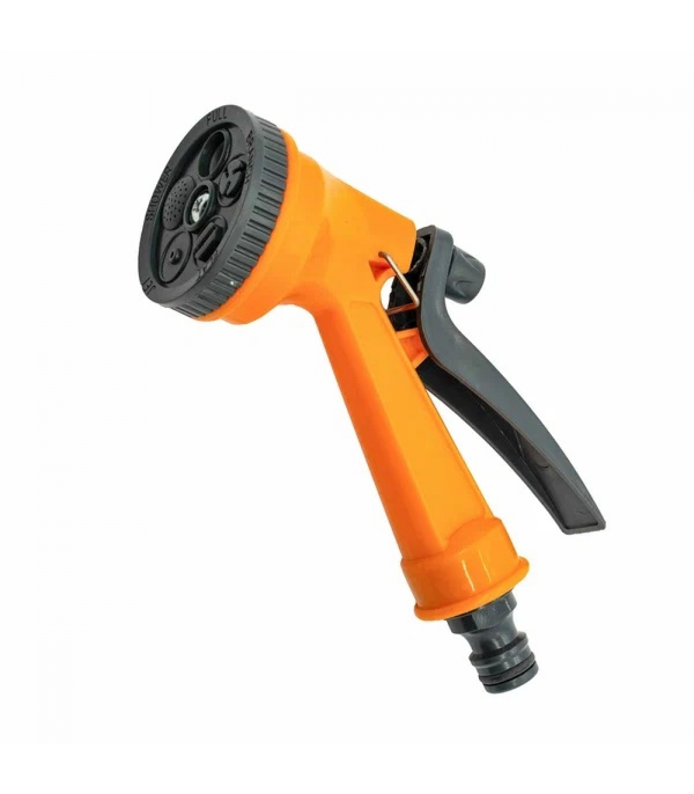 Пистолет-разбрызгиватель – механическое устройство по превращению струи жидкости в поток мелких капель, имеет 5 разных режимов подачи жидкости. Назначение инструмента — пульверизатор может использоваться для нанесения жидких удобрений или химикатов, а может применяться для капельного полива.