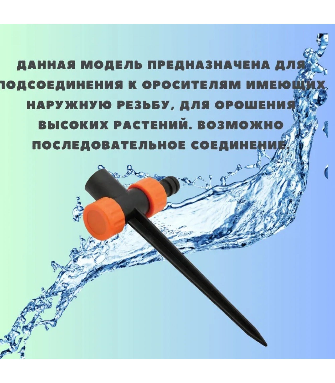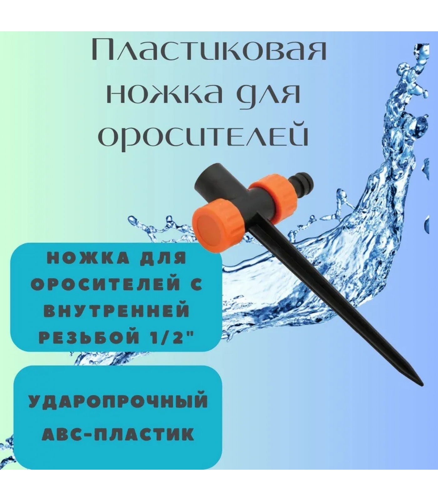 Ножка для оросителей с внутренней резьбой 1/2" выполнена из высококачественного и ударопрочного пластика ABS. Данная модель предназначена для подсоединения к оросителям имеющих наружную резьбу, для орошения высоких растений. Возможно последовательное соединение.