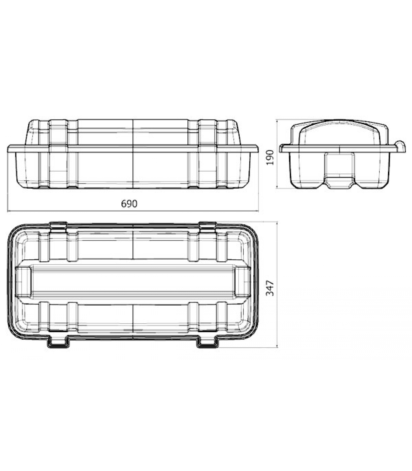 Изготовлен из ударопрочного морозостойкого полиэтилена низкого давления, устойчивого к воздействию вибрации, низких температур и агрессивных сред. Для исключения попадания влаги и пыли внутрь по всему периметру на месте стыка корпуса и крышки предусмотрен резиновый уплотнительный элемент. Допускается монтаж как в вертикальном, так и в горизонтальном положении.