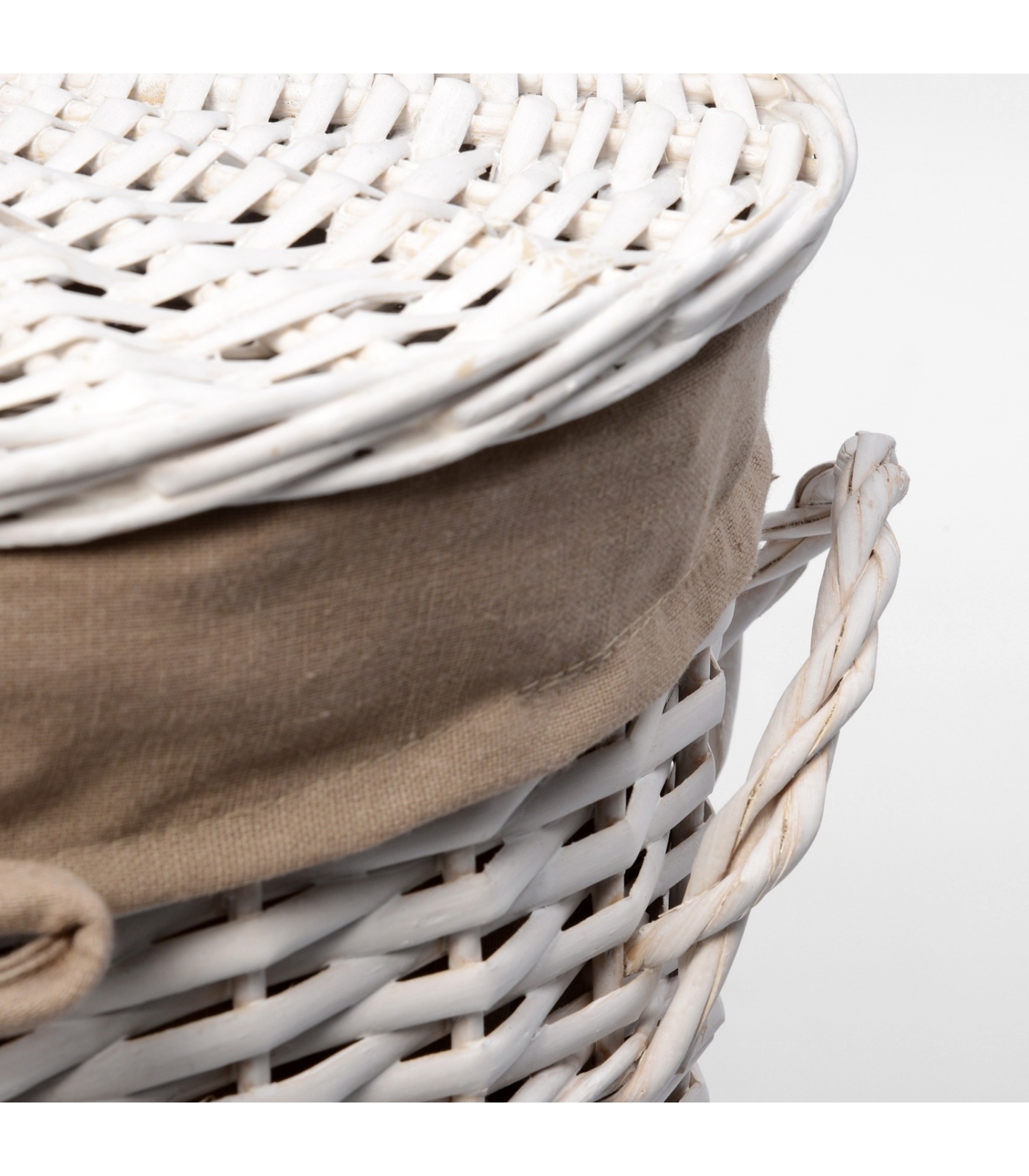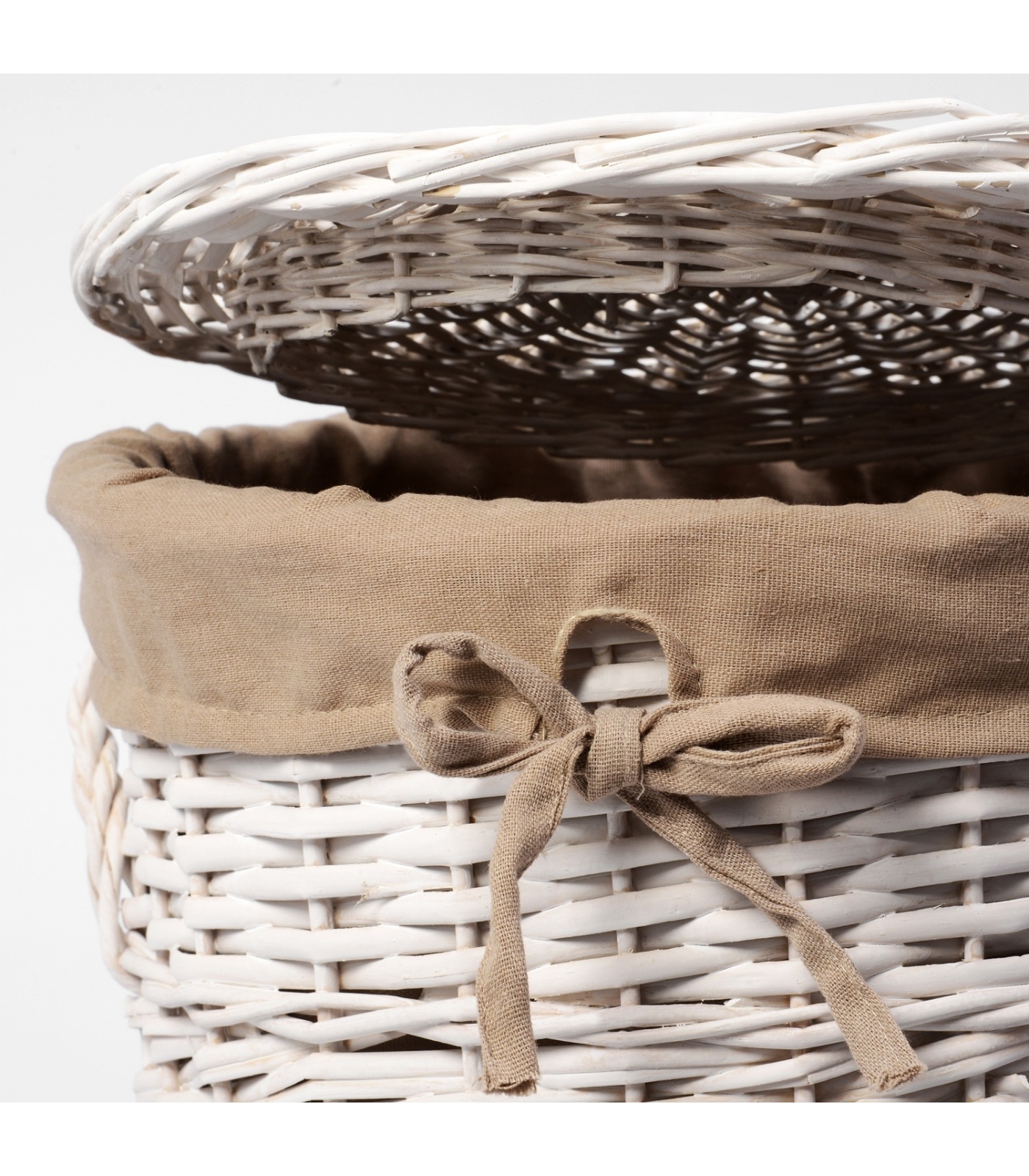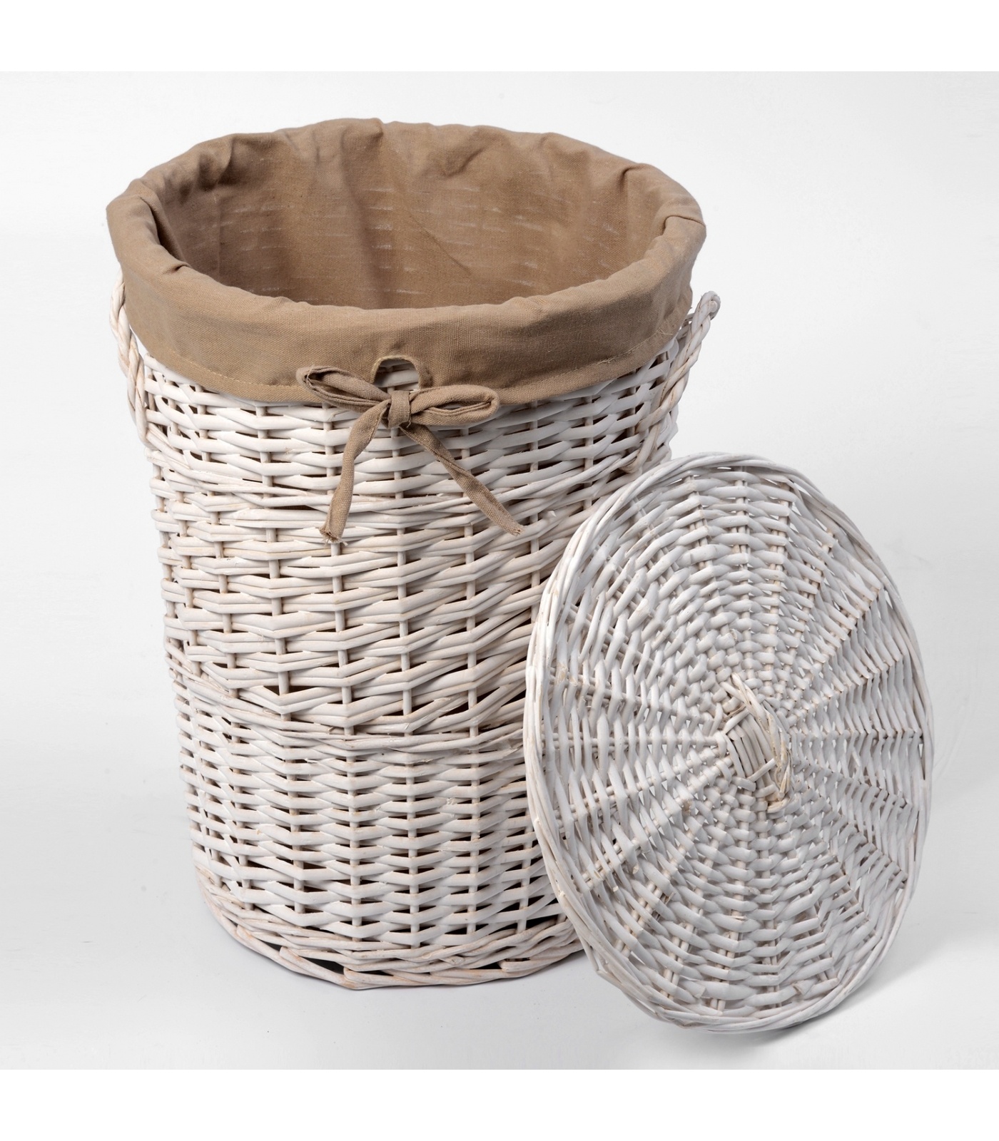 Корзины для ванной комнаты Водоотталкивающее покрытие, Съемный чехол, Цвет: корзина - белый, чехол - бежевый Прутья ивы, текстиль: 70% хлопок, 30% полиэстер 45 х 45 х 56 см* 1 год.
