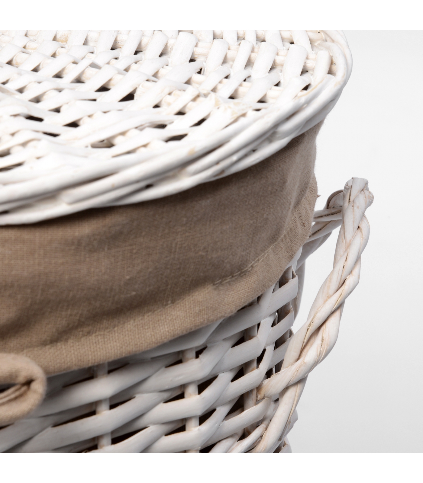 Корзины для ванной комнаты Водоотталкивающее покрытие, Съемный чехол, Цвет: корзина - белый, чехол - бежевый Прутья ивы, текстиль: 70% хлопок, 30% полиэстер 28 х28 х 40 см* 1 год.
