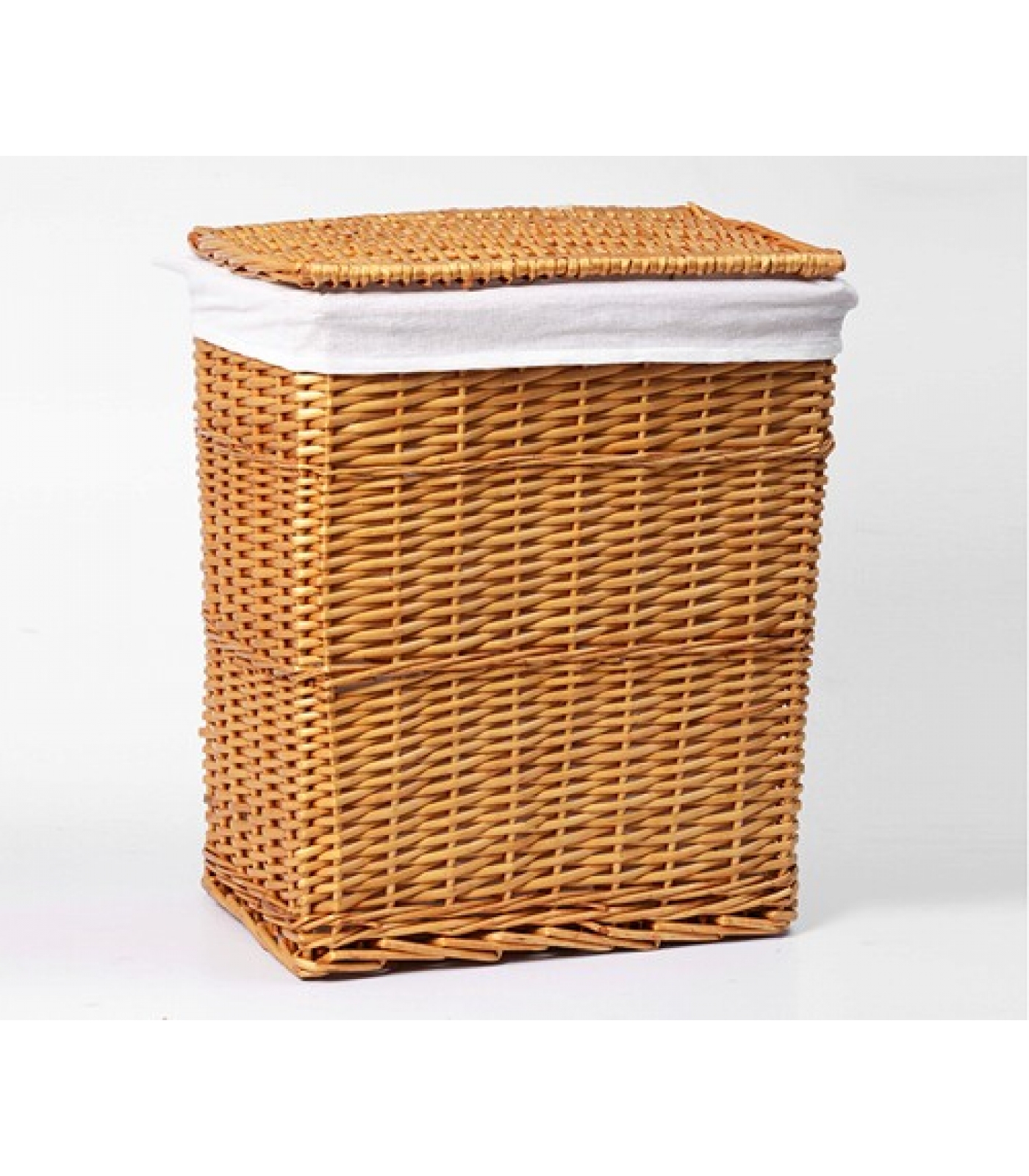 Корзины для ванной комнаты Водоотталкивающее покрытие, Съемный чехол, Цвет: корзина - светло-коричневый, чехол - белый Прутья ивы, текстиль: 70% хлопок, 30% полиэстер 39 х 26 х 44 см* 1 год.
