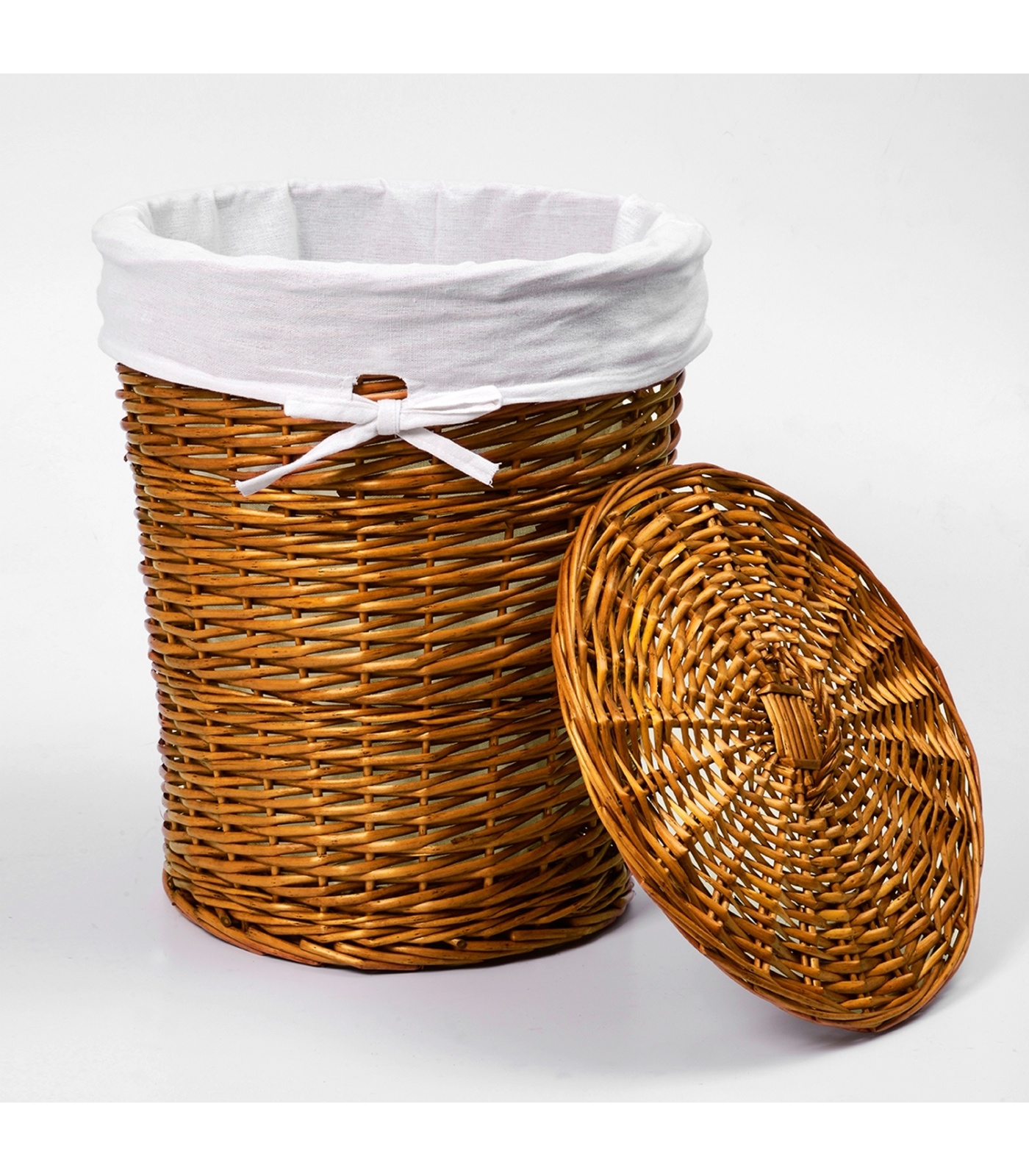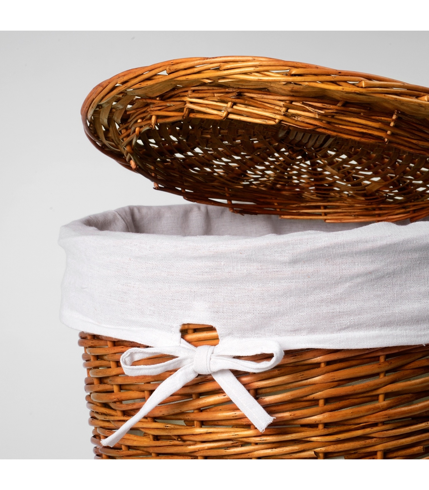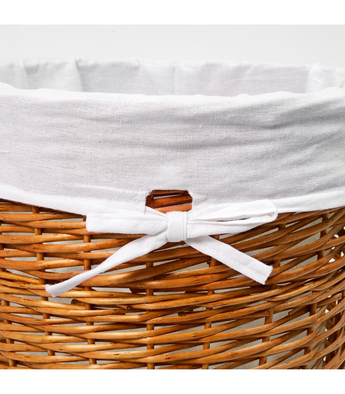 Корзины для ванной комнаты Водоотталкивающее покрытие, Съемный чехол, Цвет: корзина - светло-коричневый, чехол - белый Прутья ивы, текстиль: 70% хлопок, 30% полиэстер 46 х 46 х 57 см* 1 год.