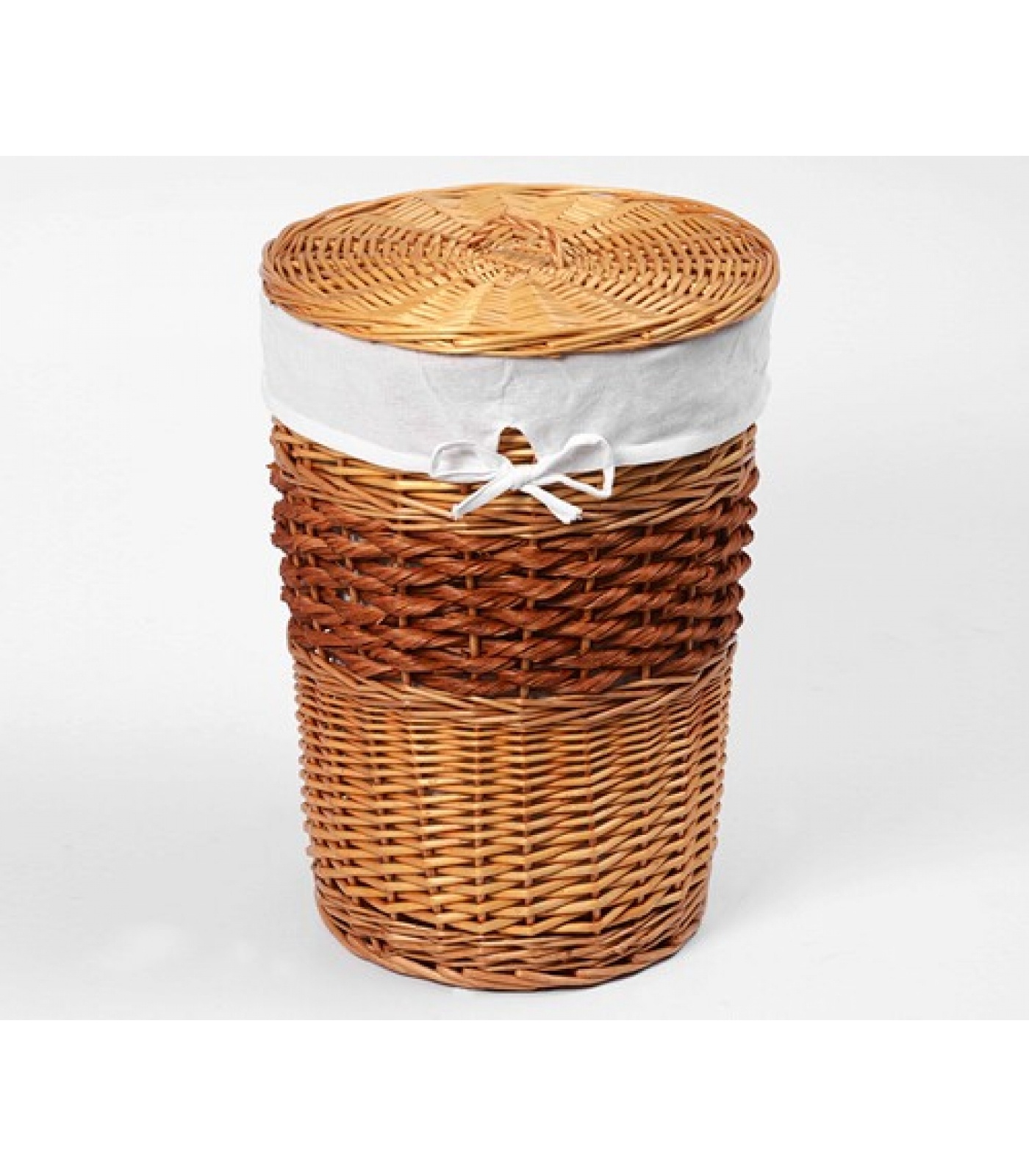 Корзины для ванной комнаты Водоотталкивающее покрытие, Съемный чехол, Цвет: корзина - светло-коричневый, чехол - белый Прутья ивы, текстиль: 70% хлопок, 30% полиэстер 30 х 30 х 38 см* 1 год.