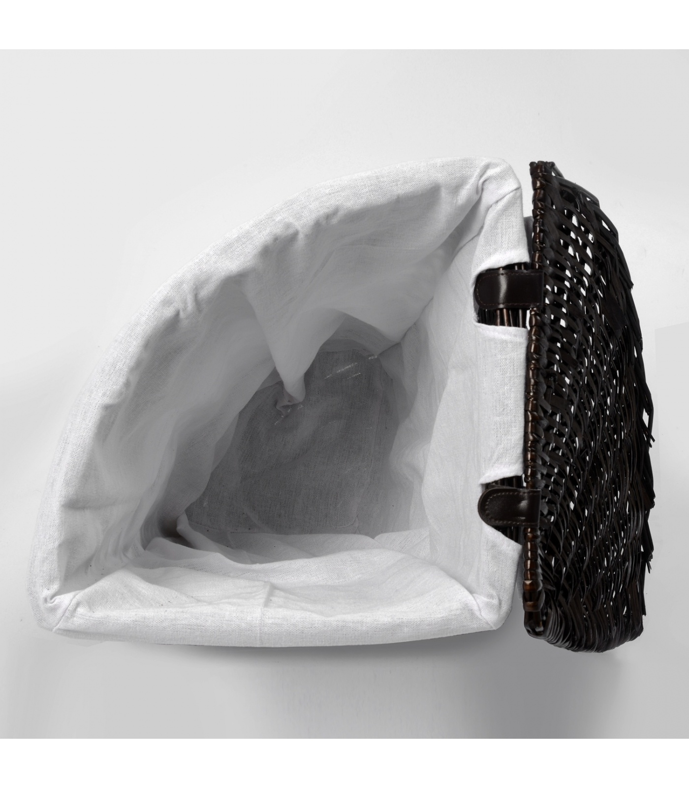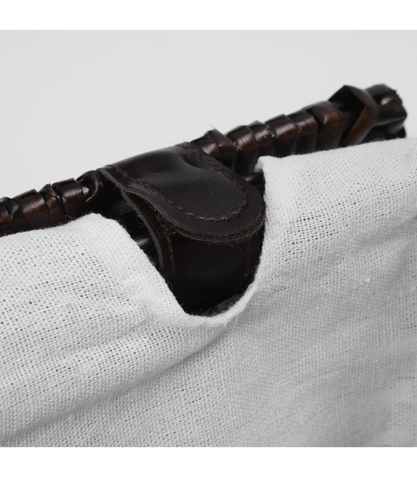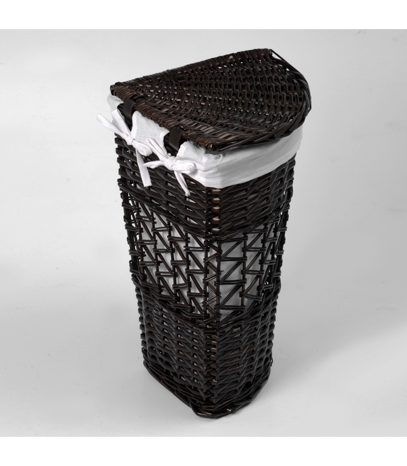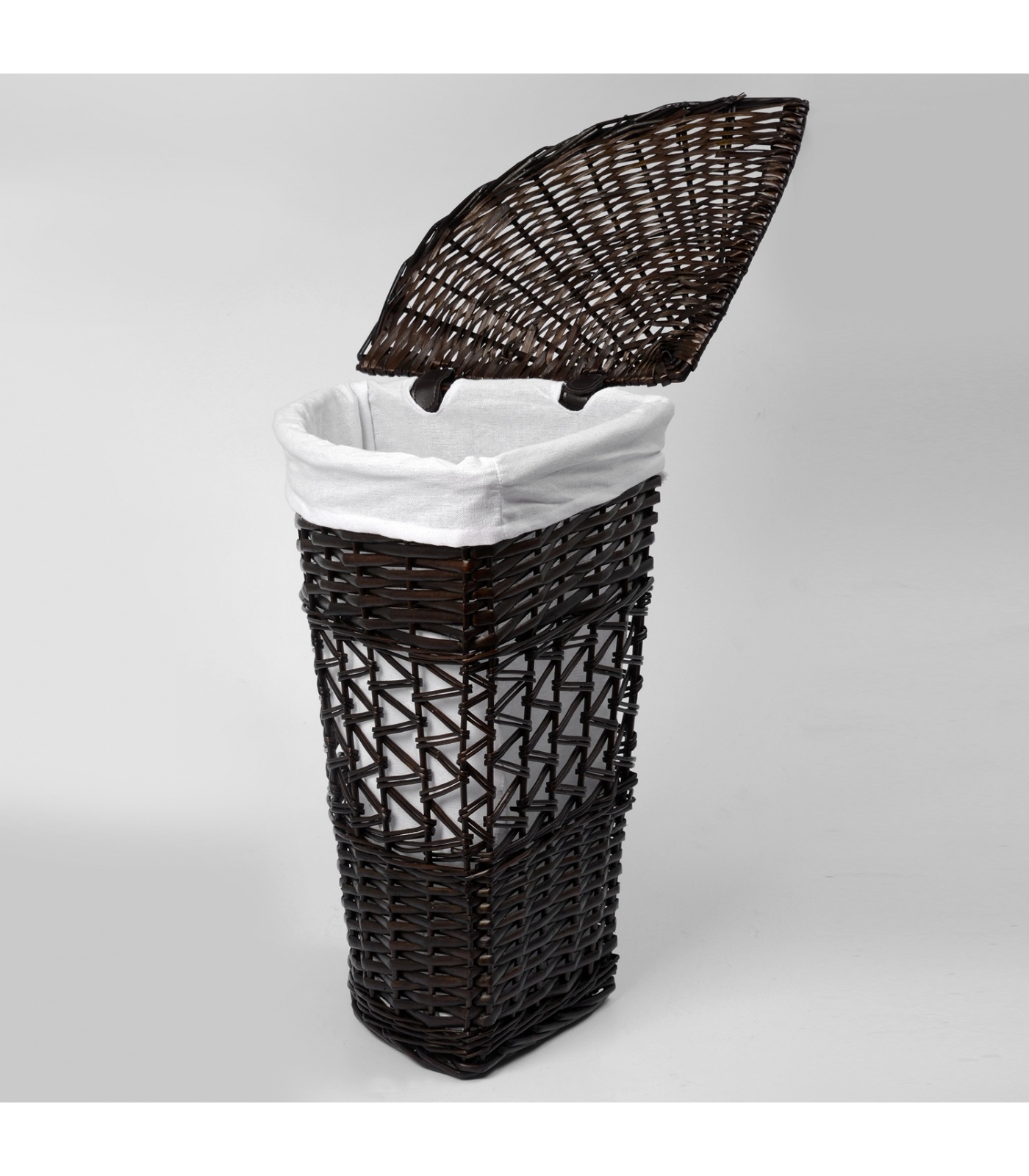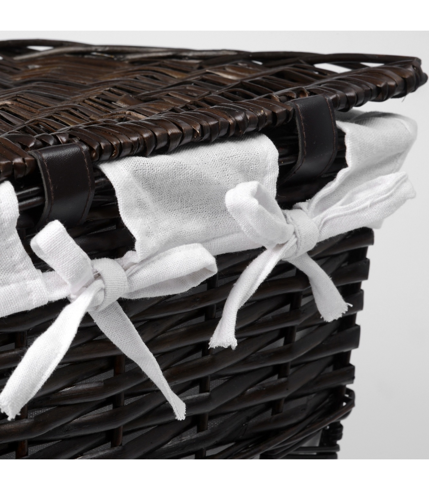 Корзины для ванной комнаты Водоотталкивающее покрытие, Съемный чехол, Цвет: корзина - темно-коричневый, чехол - белый Прутья ивы, текстиль: 70% хлопок, 30% полиэстер 33 х 33 х 51 см* 1 год.