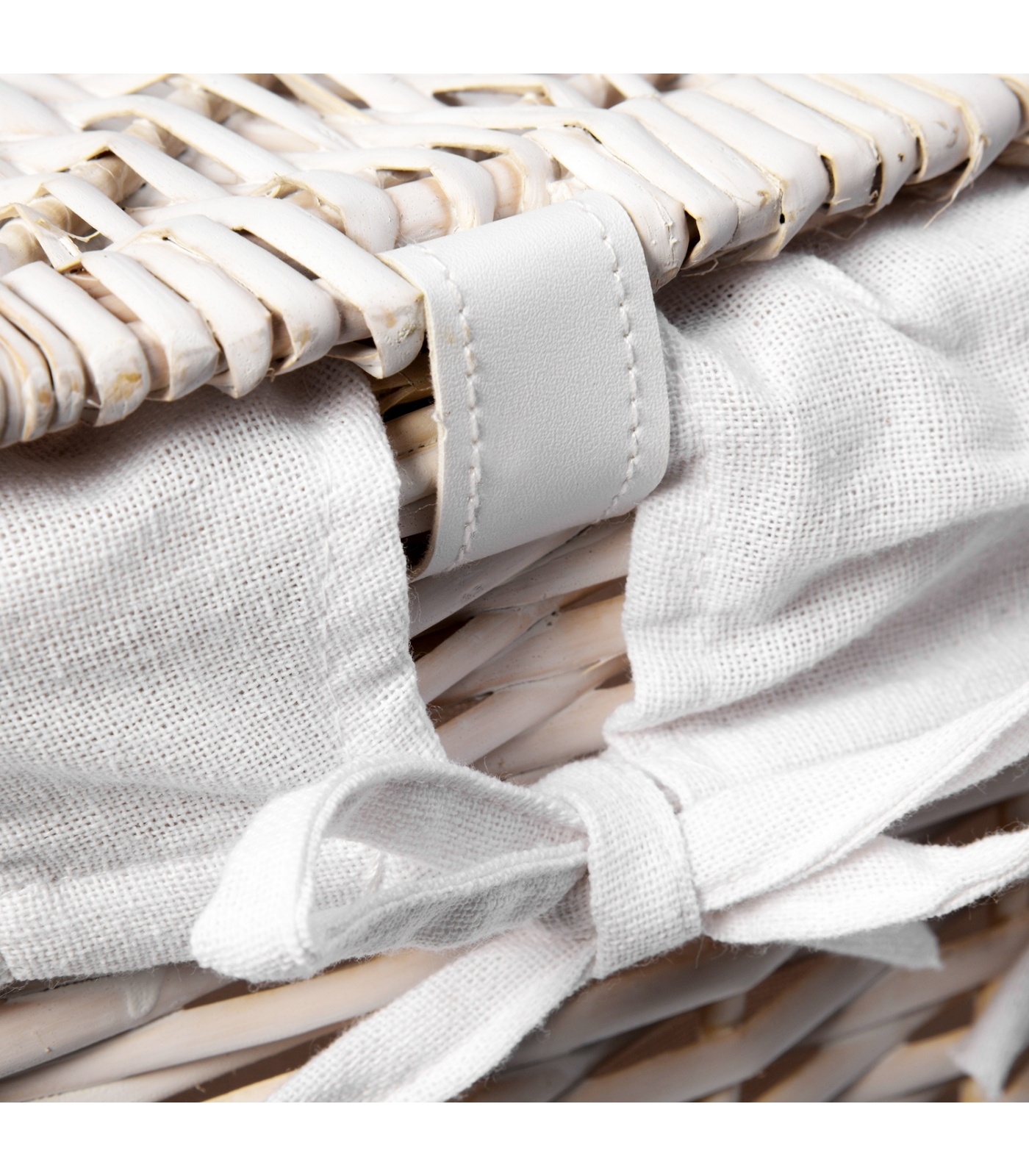 Корзины для ванной комнаты Водоотталкивающее покрытие, Съемный чехол, Цвет: корзина - белый, чехол - белый Прутья ивы, текстиль: 70% хлопок, 30% полиэстер 39 х 39 х 56 см* 1 год.