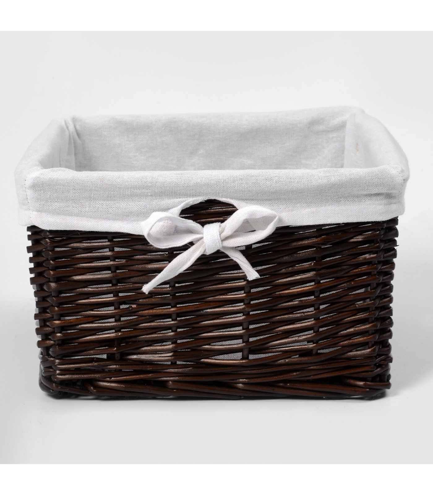 Корзины для ванной комнаты Водоотталкивающее покрытие, Съемный чехол, Цвет: корзина - темно-коричневый, чехол - белый Прутья ивы, текстиль: 70% хлопок, 30% полиэстер 26 х 26 х 16 см* 1 год.