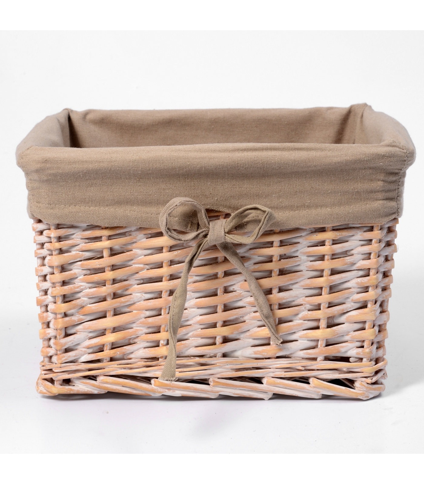 Корзины для ванной комнаты Водоотталкивающее покрытие, Съемный чехол, Цвет: корзина - темно-кремовый, чехол - бежевый Прутья ивы, текстиль: 70% хлопок, 30% полиэстер 27 х 27 х 18 см* 1 год.