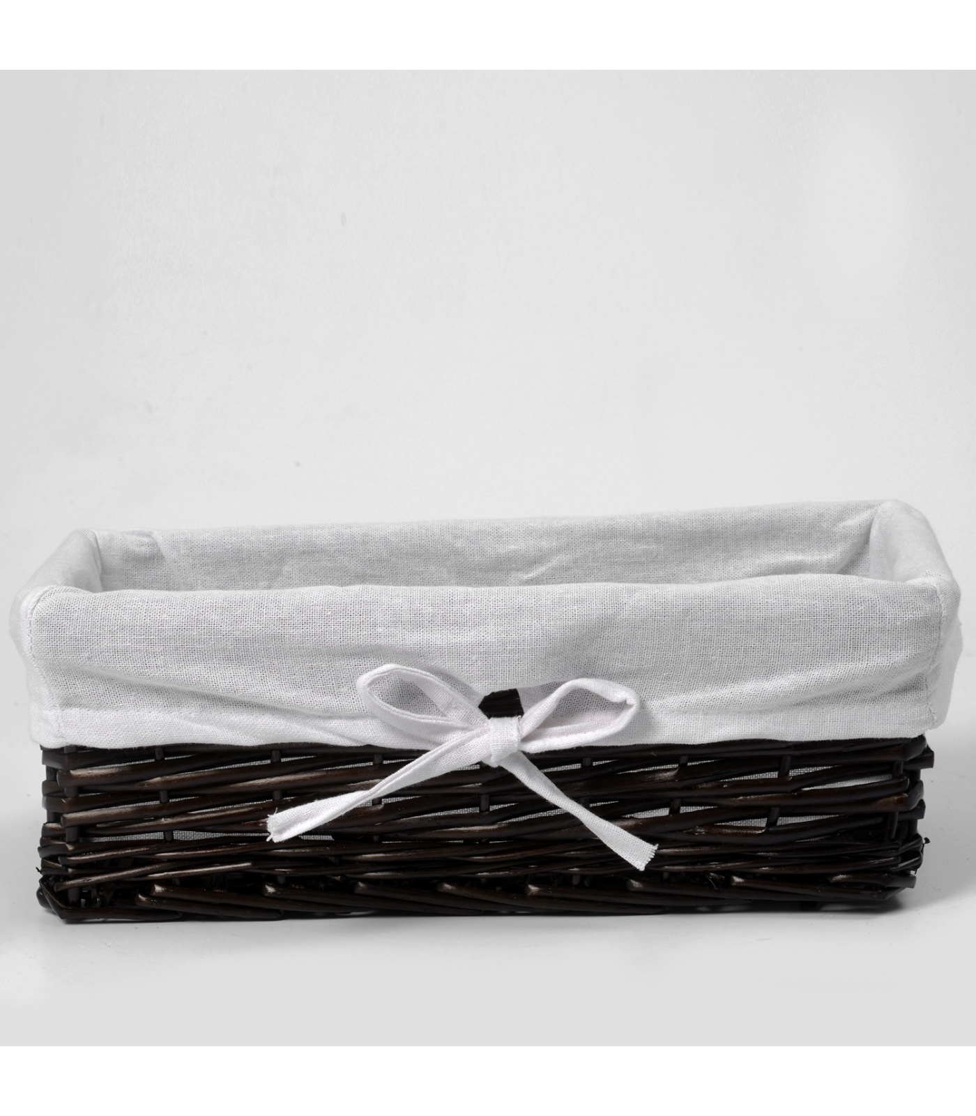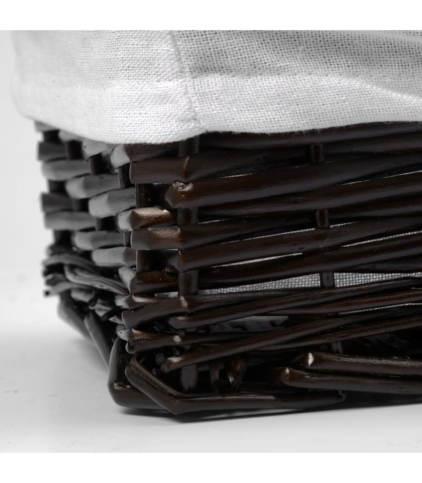 Корзины для ванной комнаты Водоотталкивающее покрытие, Съемный чехол, Цвет: корзина - темно-коричневый, чехол - белый Прутья ивы, текстиль: 70% хлопок, 30% полиэстер 37 х 19 х 12 см* 1 год.