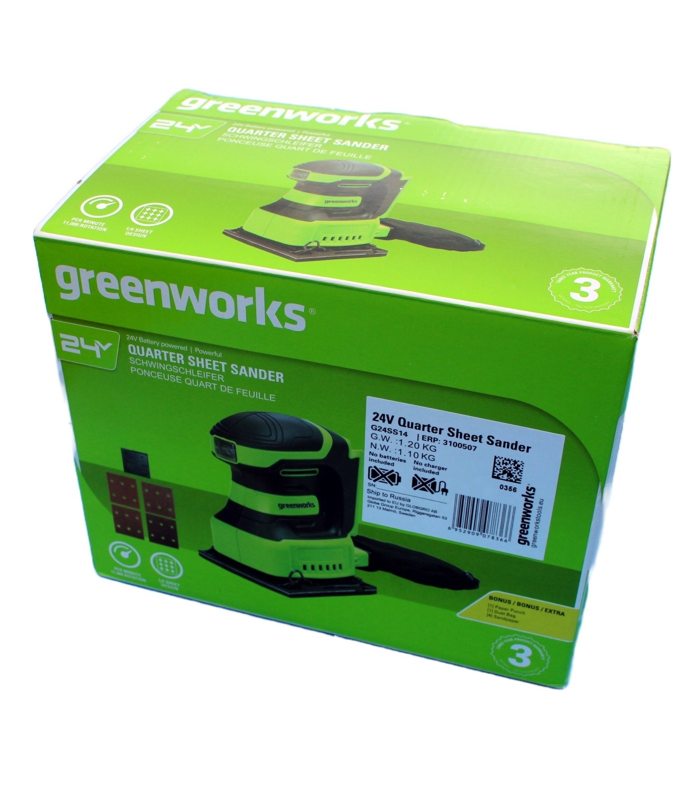Плоскошлифовальная машина аккумуляторная Greenworks G24SS14 (3100507), 24 V, без АКБ и ЗУ