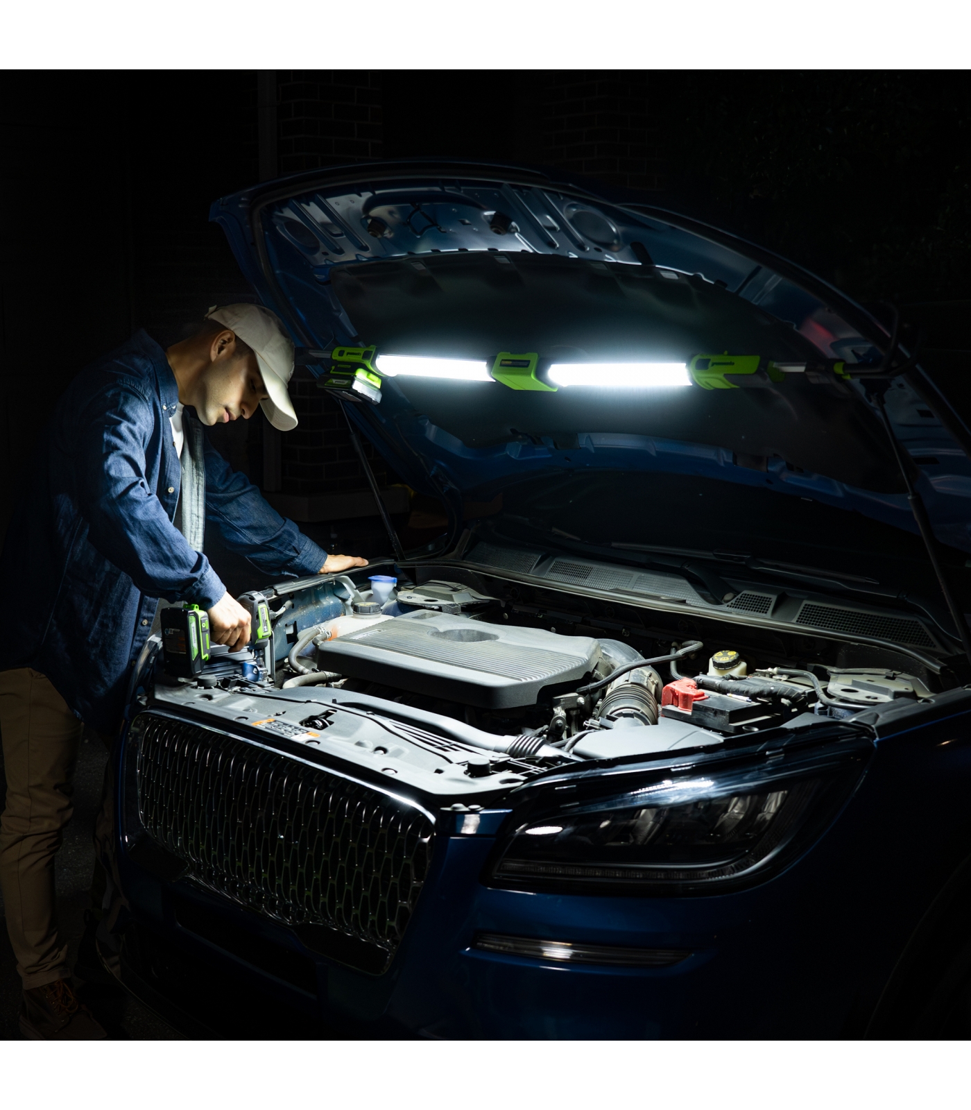 Яркий и универсальный LED-прожектор Greenworks G24UHL поможет в работе с автомобилями, а также легко развеет темноту в путешествии и на даче!