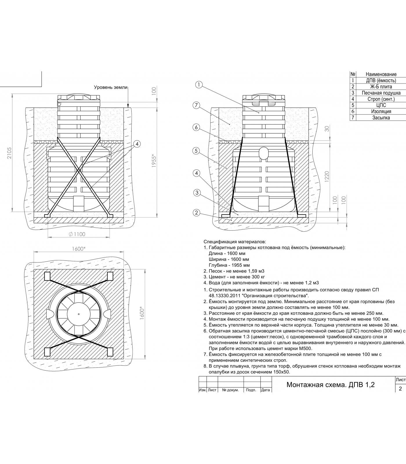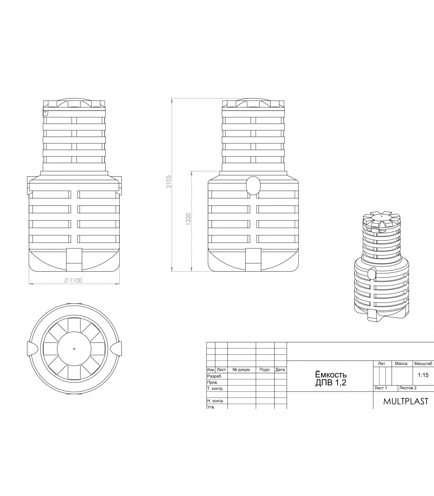 Подземная емкость ДПВ 1200 - это резервуар объемом 1200 литров, который предназначен для хранения питьевой воды. Данная емкость изготавливается только из пищевого LLDPE и предполагает подземное использование.