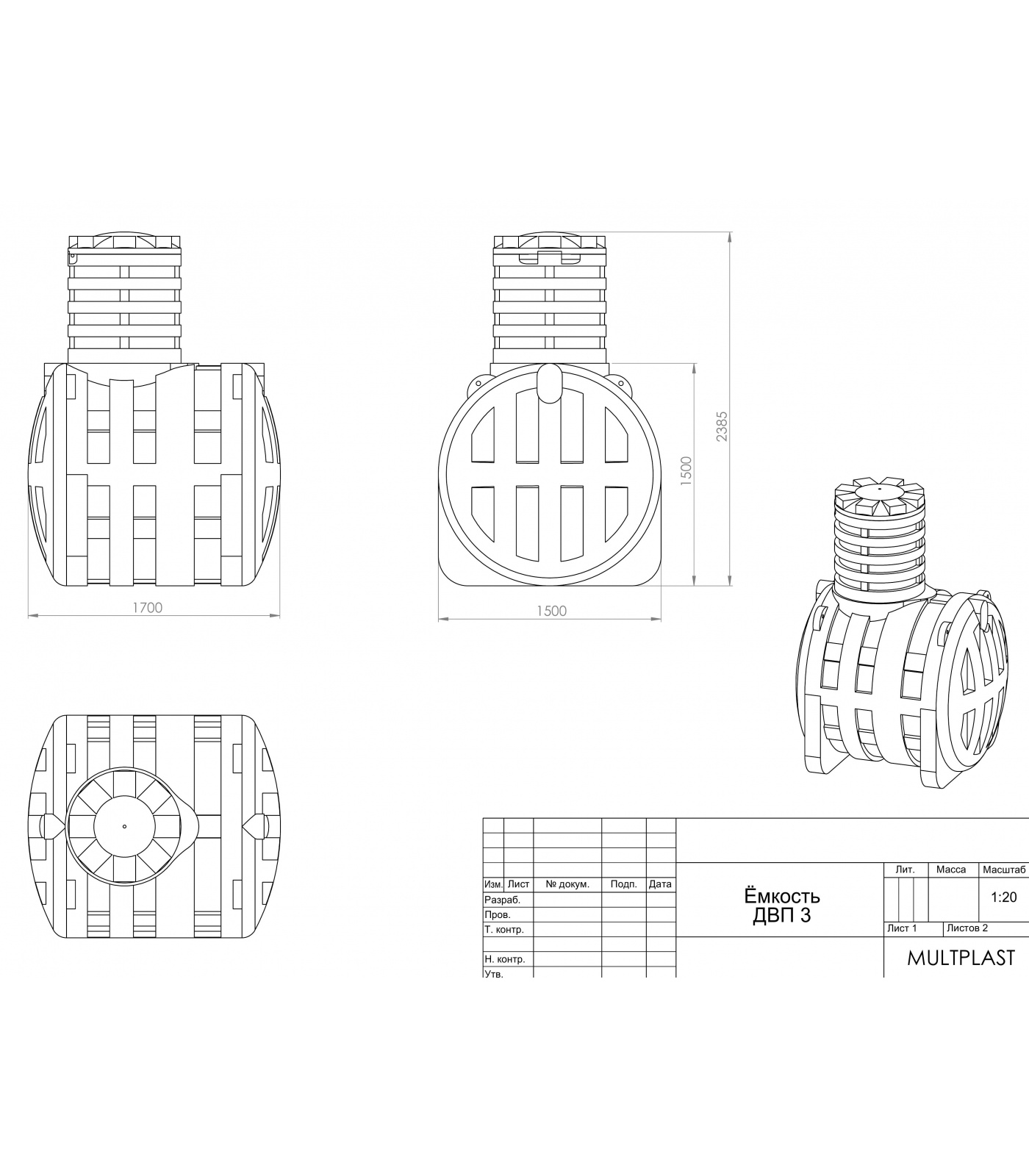Подземная емкость ДПВ 3000 - это резервуар объемом 3000 литров, который предназначен для хранения питьевой воды. Данная емкость изготавливается только из пищевого LLDPE и предполагает подземное использование.