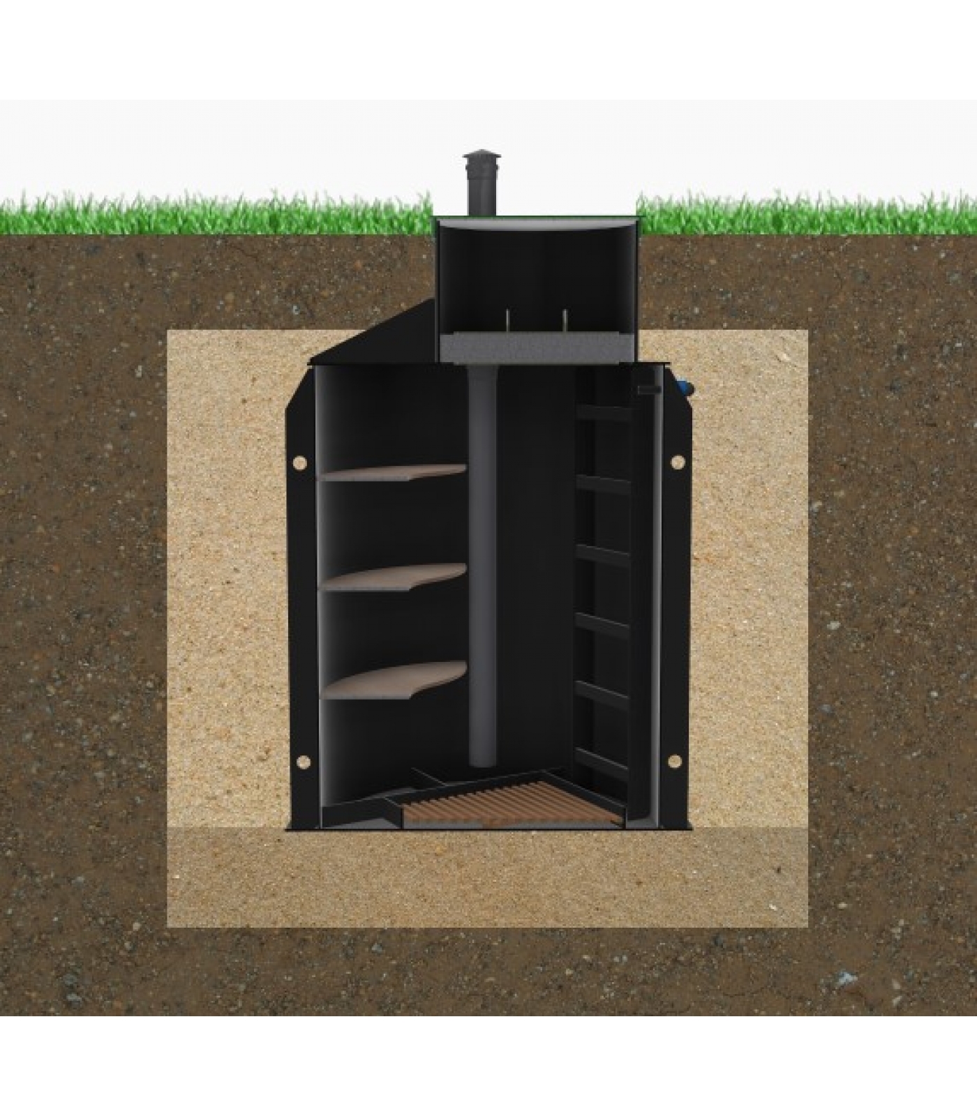 Погреб изготовлен из полиэтилена низкого давления с длительным сроком службы — не менее 25 лет