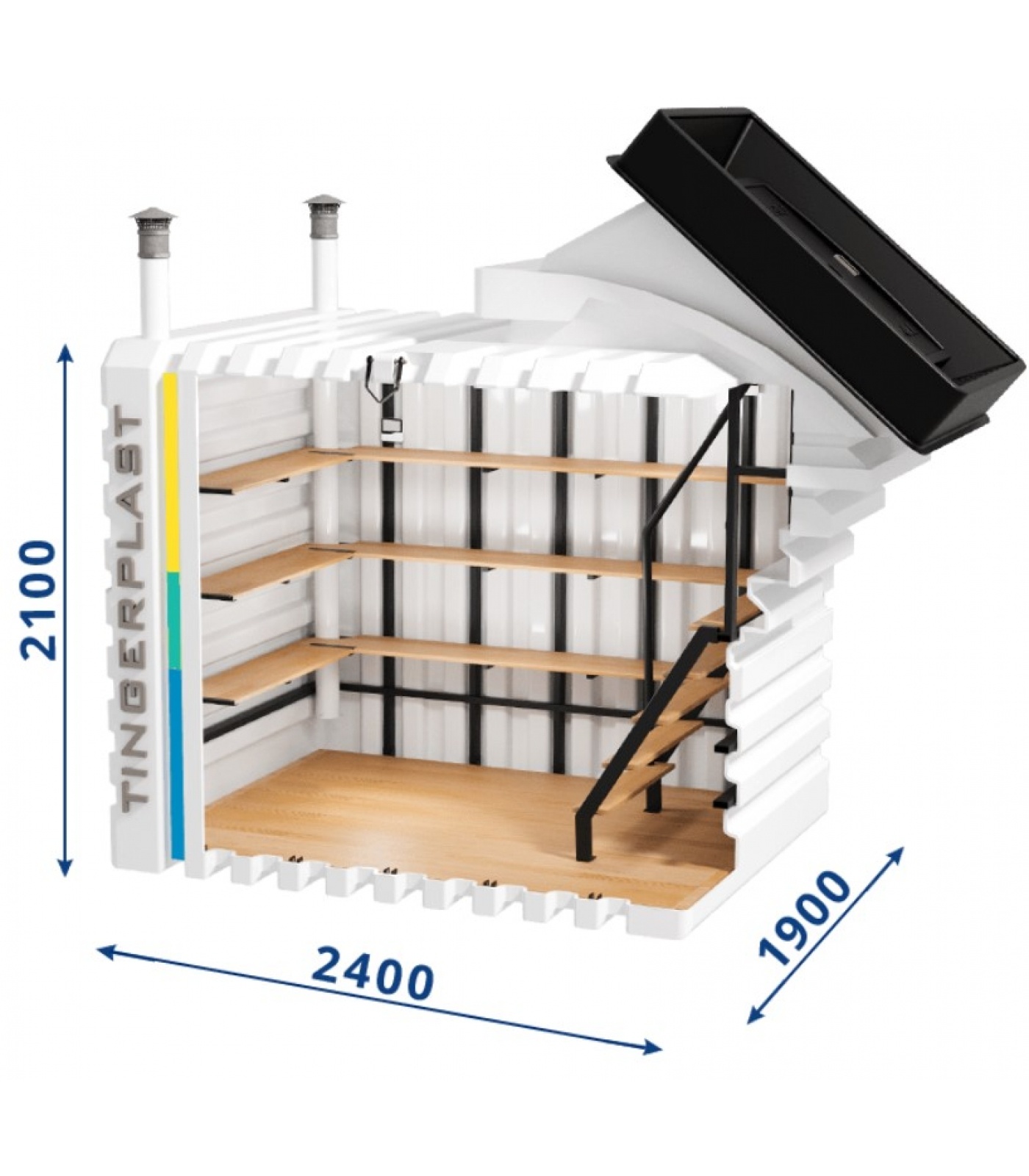 ТИНГАРД Prestige имеет вертикальный вход (под наклоном) – такое исполнение удобно, когда вы монтируете погреб на открытом участке.