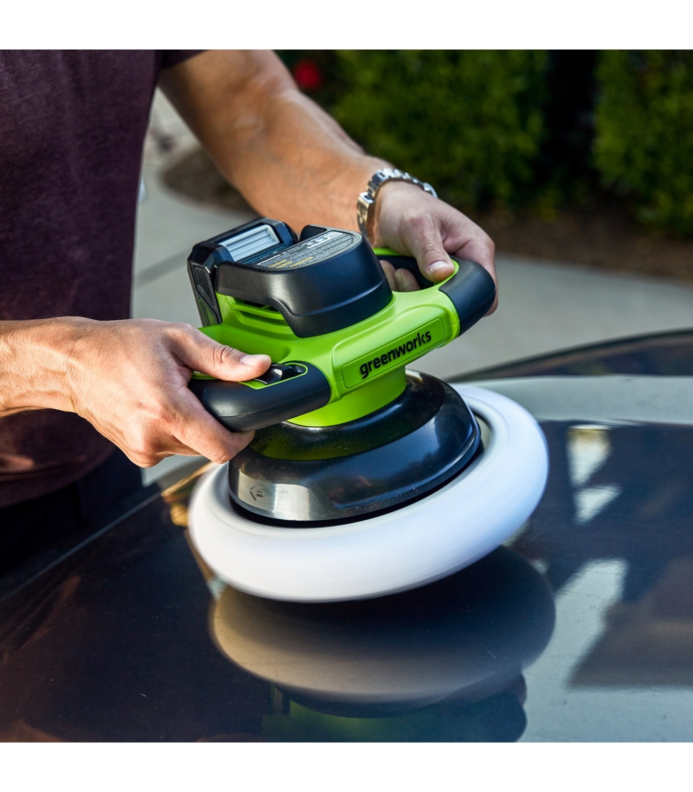 Полировальная эксцентриковая шлифмашина Greenworks G24BU10 - создана для максимально равномерного полирования с одинаковой скоростью.