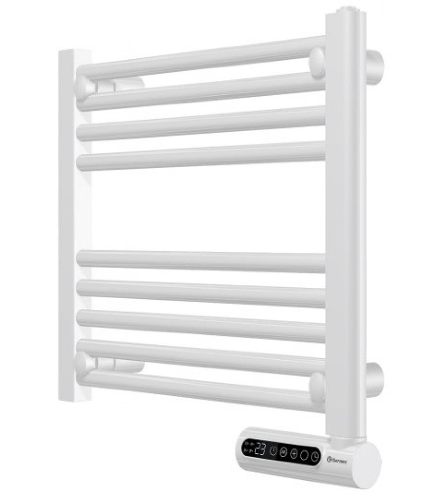 Гибкие настройки. В нижней части корпуса расположен электронный дисплей, с помощью которого можно выбрать температуру нагрева полотенцесушителя, увидеть температуру помещения, а также установить настройки таймера.