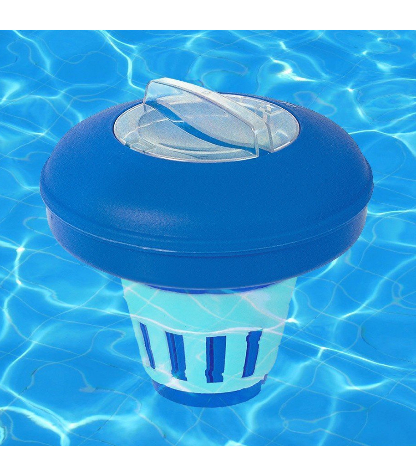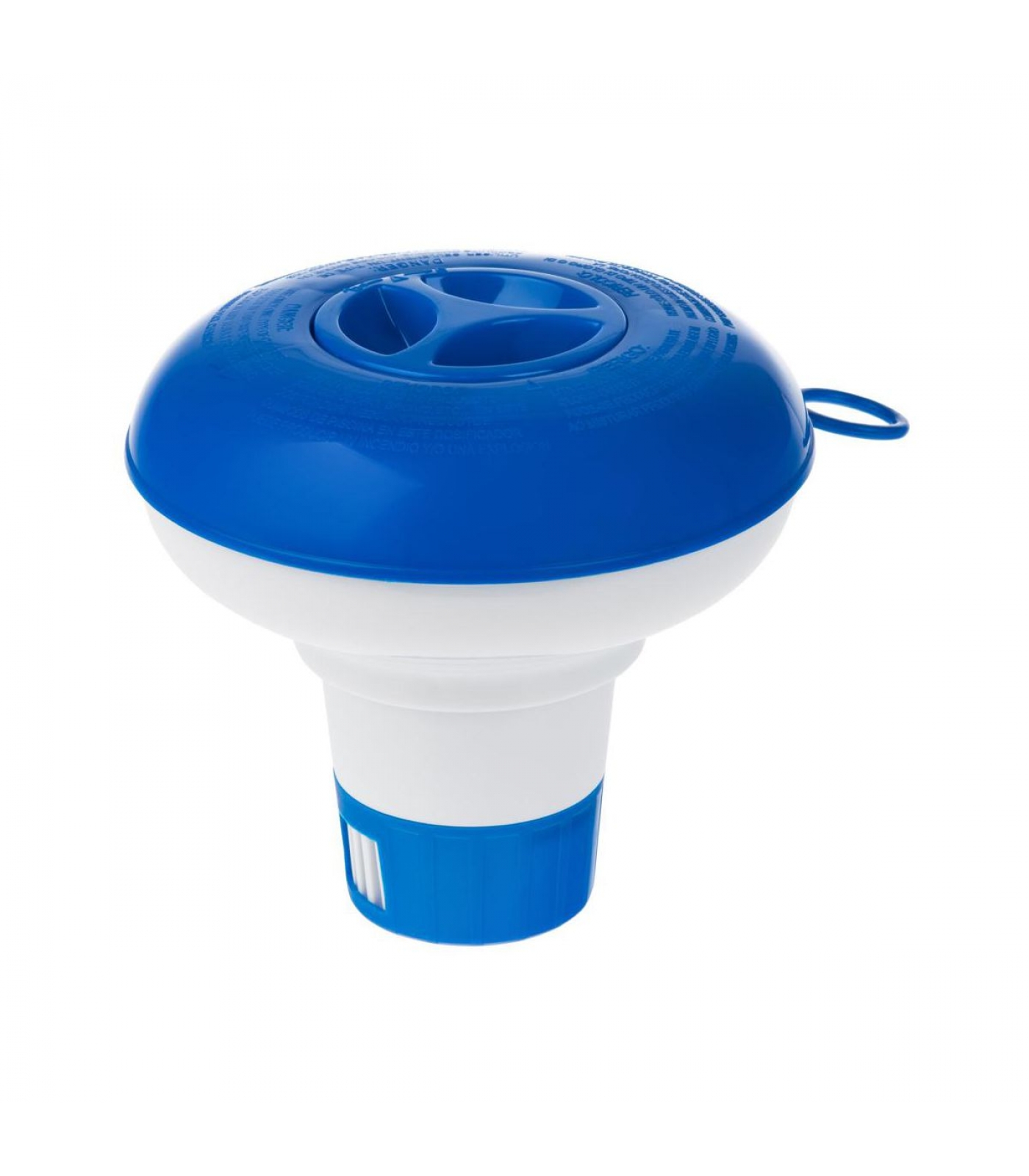 Очень удобный плавающий дозатор Bestway (артикул 58071 ) для дозированного добавления химических реагентов в бассейн, например, хлорирования. Изготовлен из безвредного нетоксичного ABS пластика, не разлагается под действием химии. Верхняя крышка закручивающаяся с блокировкой. Отлично регулирует интенсивность попадания дезинфицирующих веществ в воду бассейна.