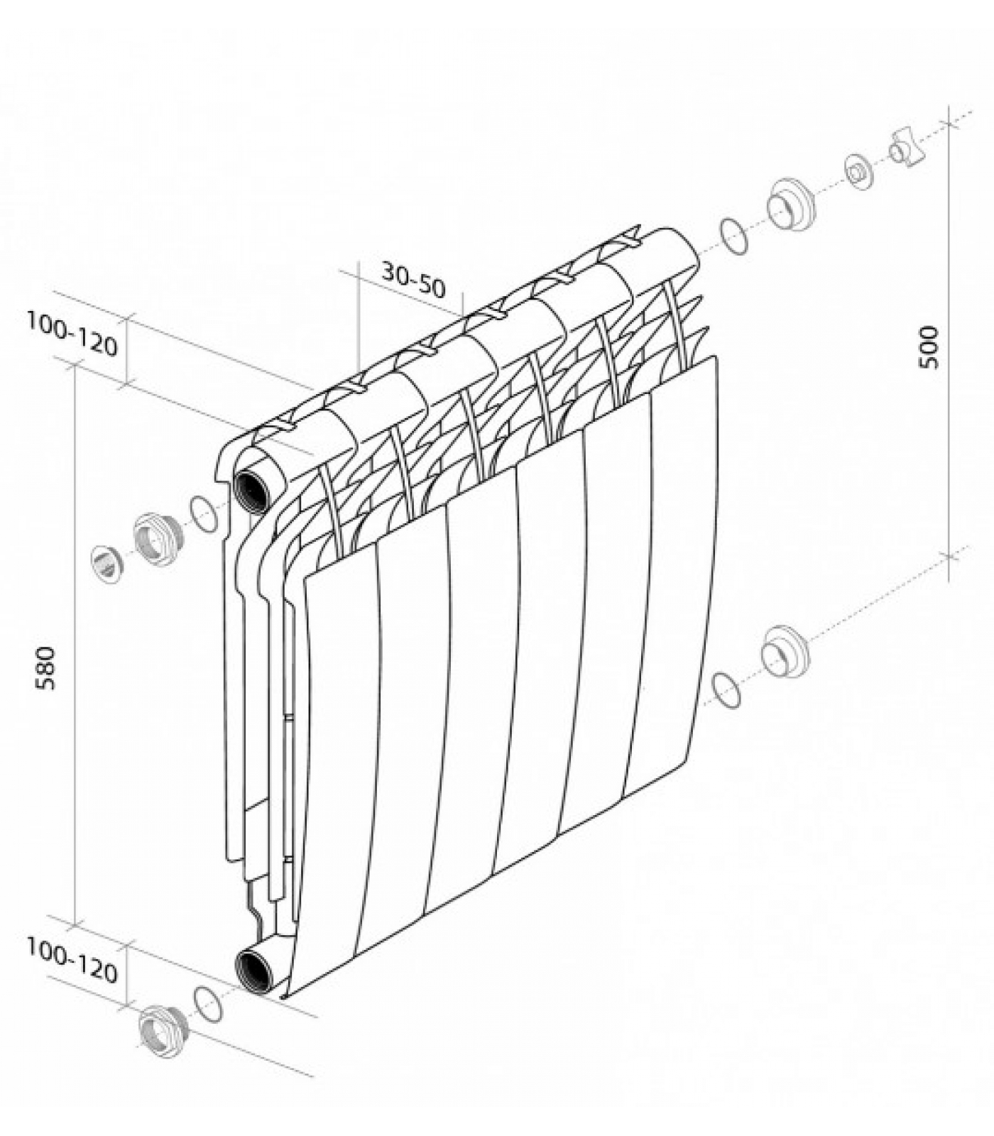 Дополнительное оребрение на вертикальном коллекторе секции увеличивает теплоотдачу радиатора на 5%.