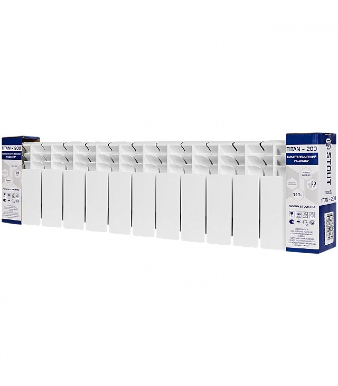 Радиатор биметаллический STOUT TITAN 200 13 секций боковое подключение (белый RAL 9016)