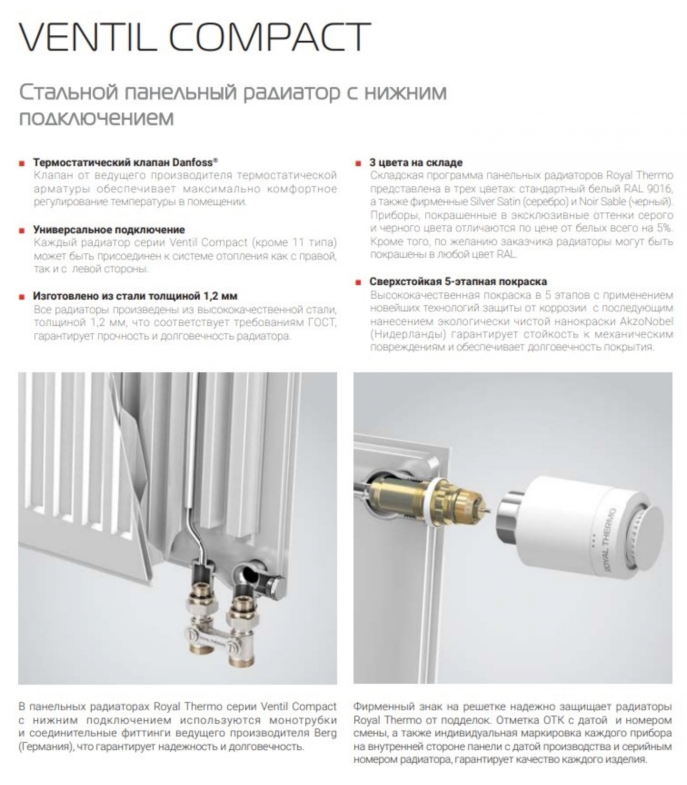 Высочайшее качество и надежность радиаторов Royal Thermo подтверждены фирменной гарантией 10 лет. Каждый радиатор имеет технический паспорт.