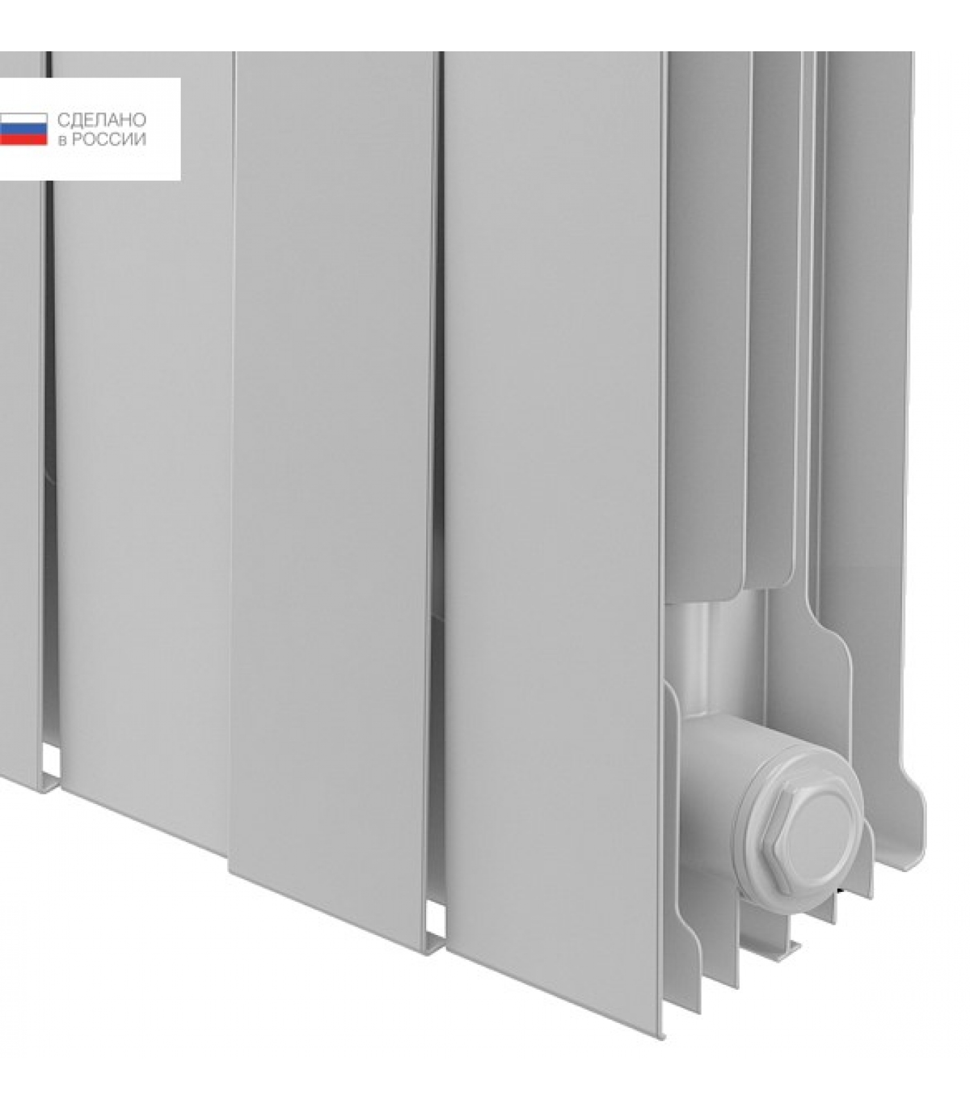 Дополнительное оребрение на вертикальном коллекторе секции увеличивает теплоотдачу радиатора на 5%. Такое решение способствует более быстрому обогреву помещений при том же размере и весе секций.
