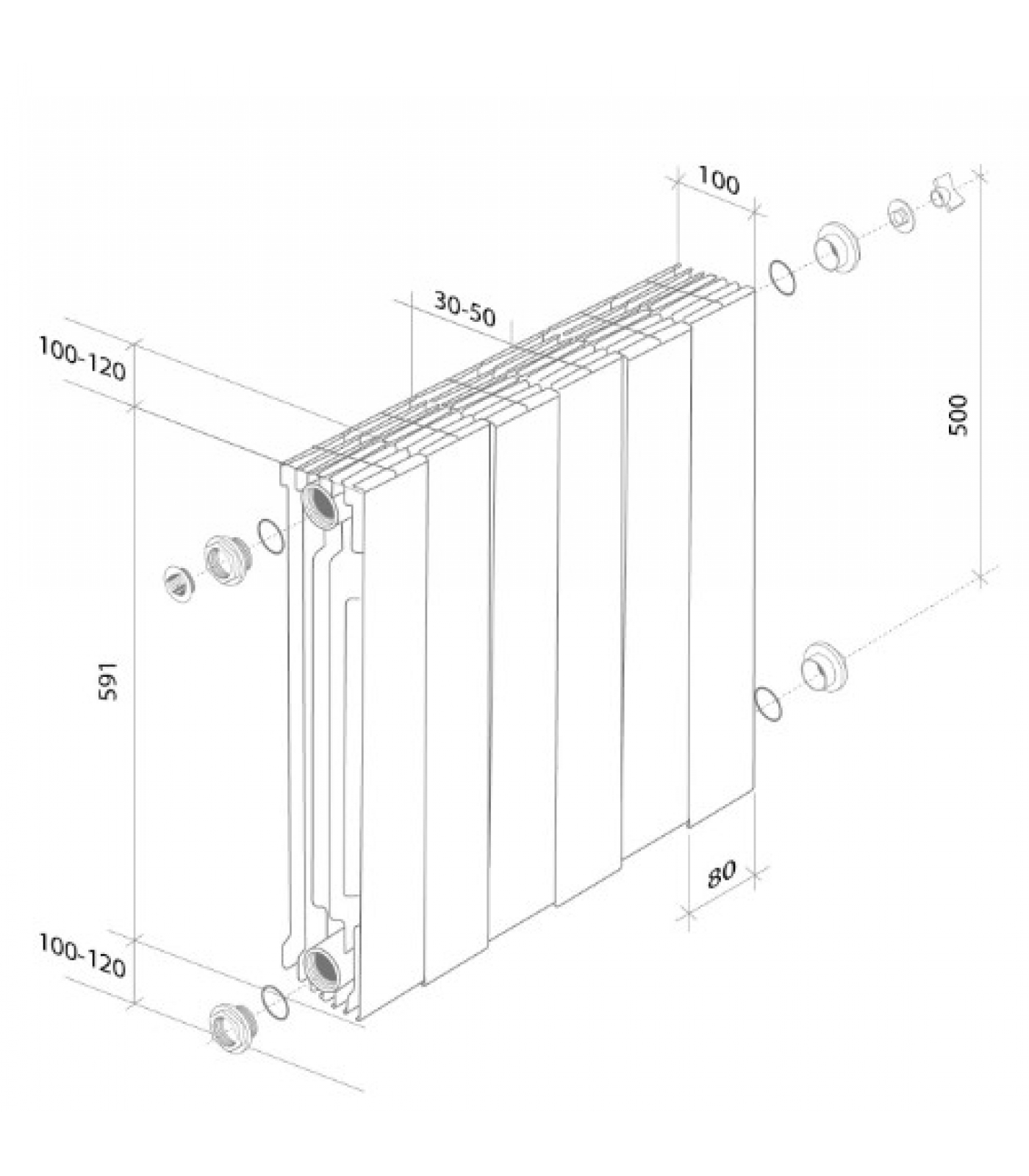 Дополнительное оребрение на вертикальном коллекторе секции увеличивает теплоотдачу радиатора на 5%. Такое решение способствует более быстрому обогреву помещений при том же размере и весе секций.