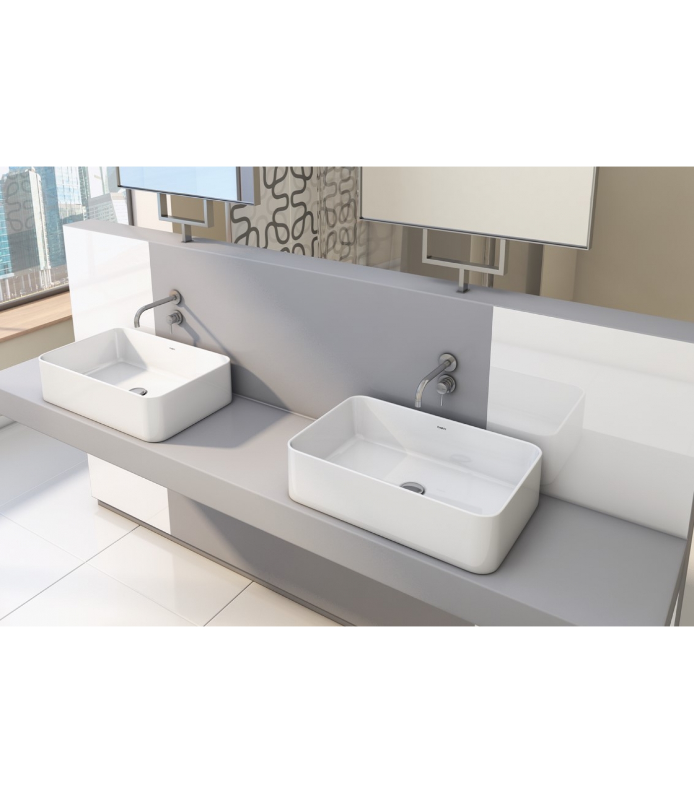 Раковина Kirovit Олимпия 56 - современная стильная раковина с установкой на столешницу для высоких отдельностоящих, либо настенных смесителей.