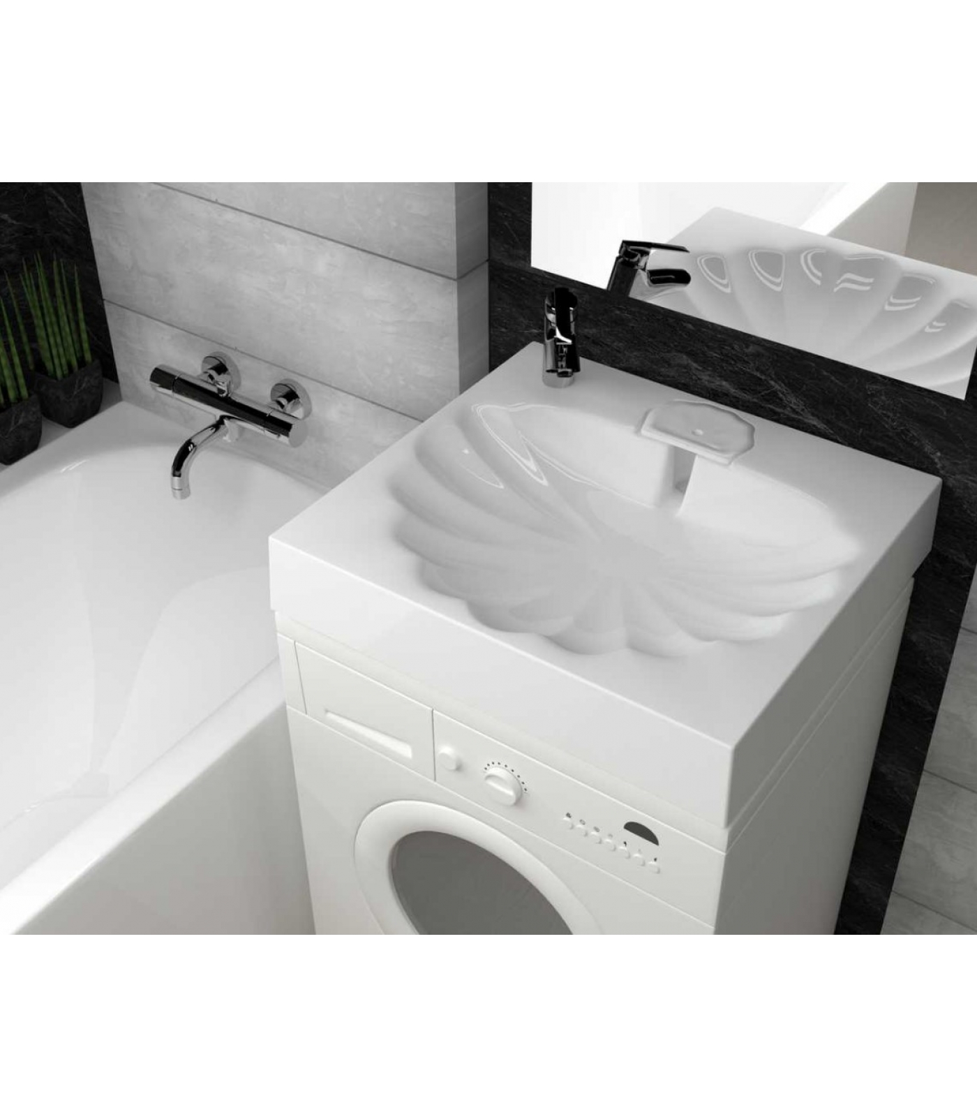 Раковины MARKO Ариэль не только поможет вам сэкономить пространство из-за размещения над стиральной машиной, но и подчеркнет ваш уникальный стиль, благодаря дизайнерской чаше в форме морской раковины.
