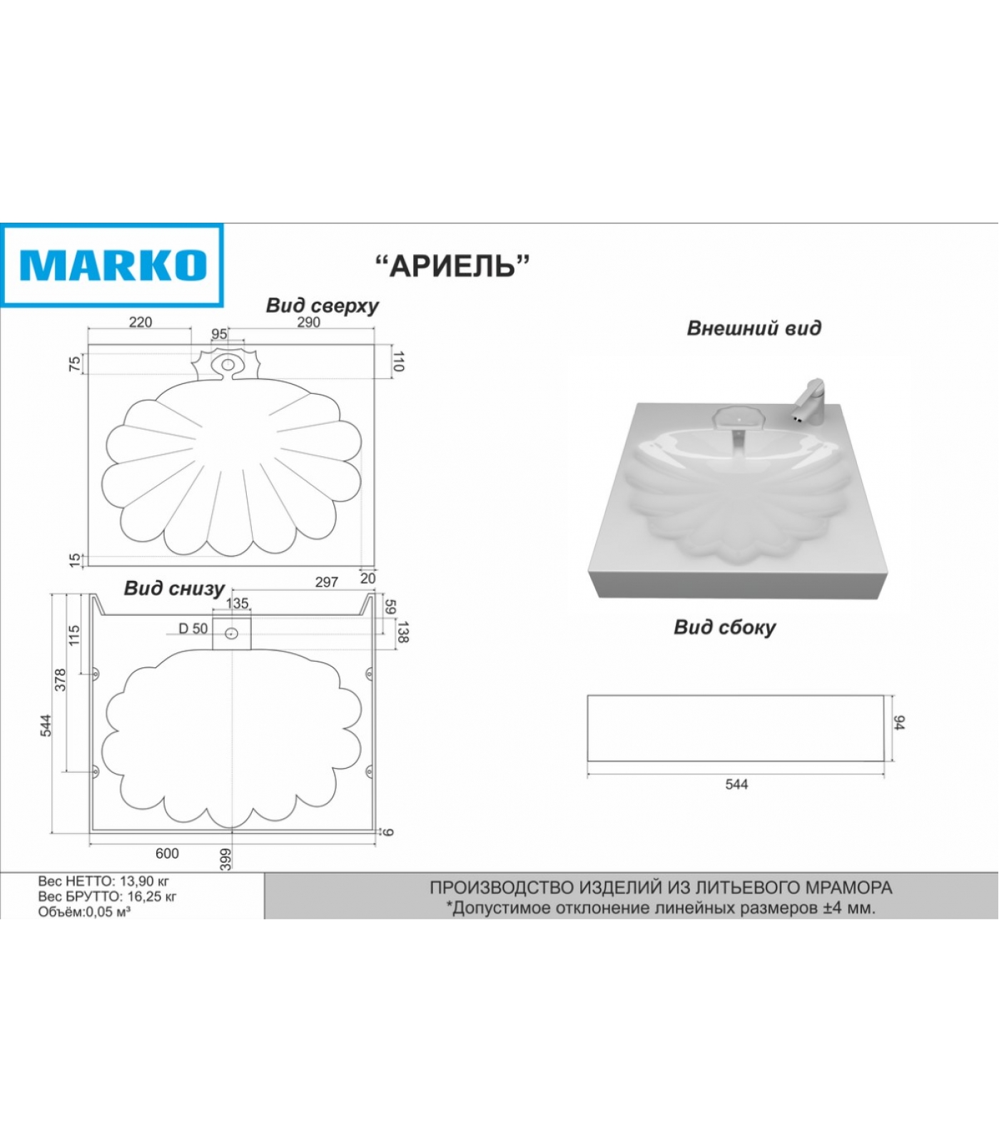 | Материал | Литьевой мрамор |