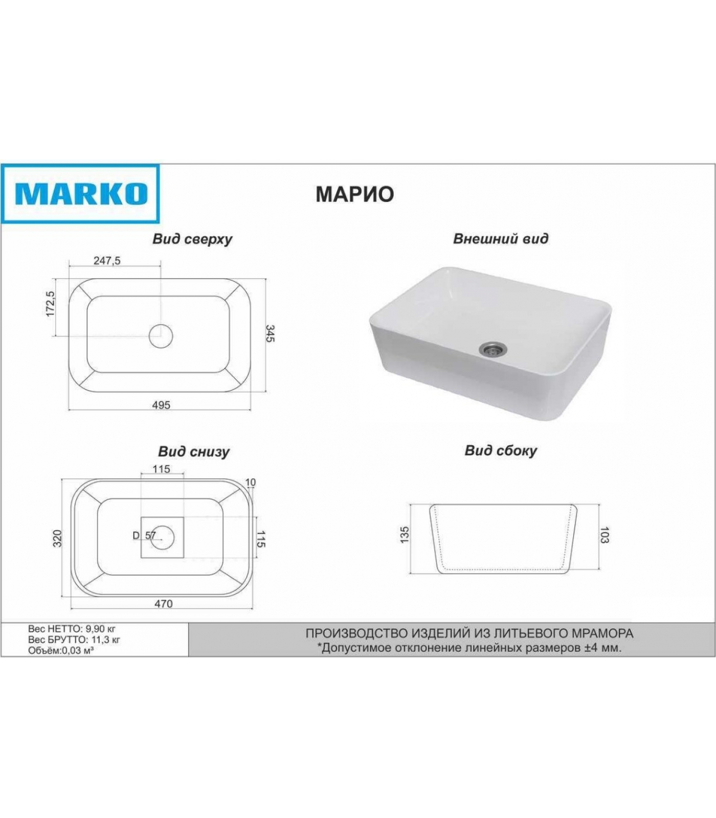 | Материал | Литьевой мрамор |
