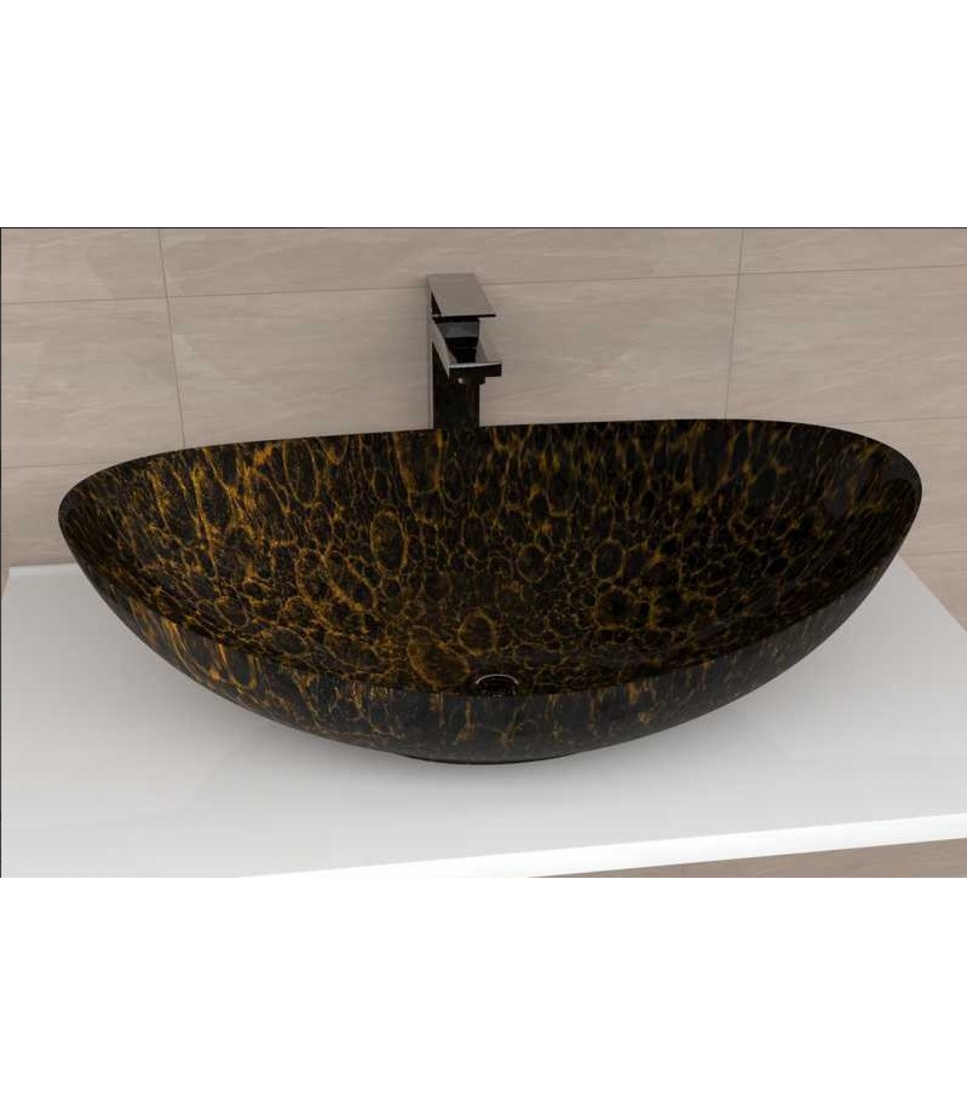 Раковина Марко Ореол 59, 578х380х160, накладная на столешницу, овальная, золотой вулкан