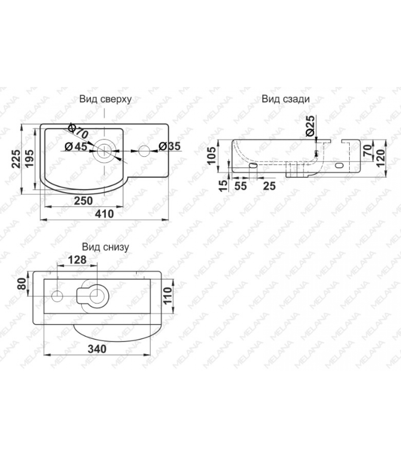 | Диаметр слива, см | 4,5 |