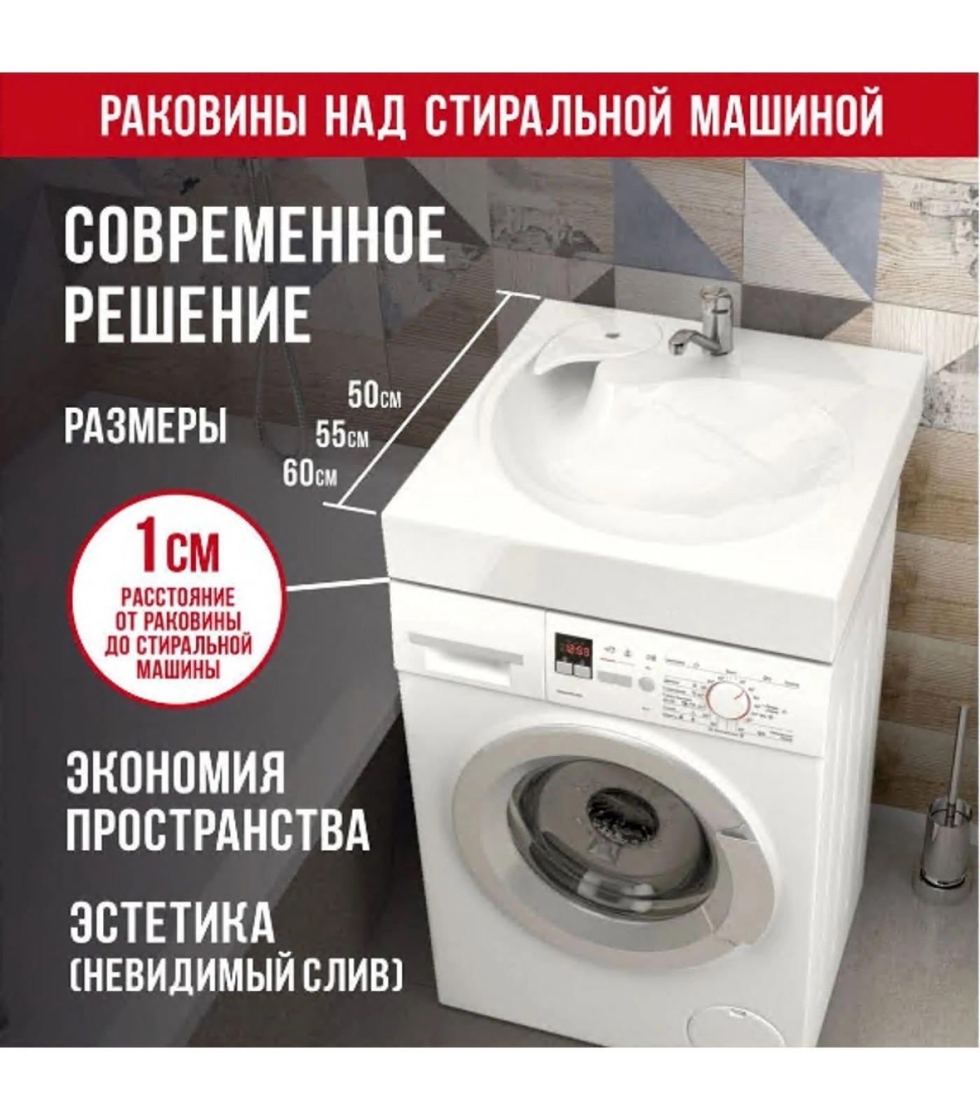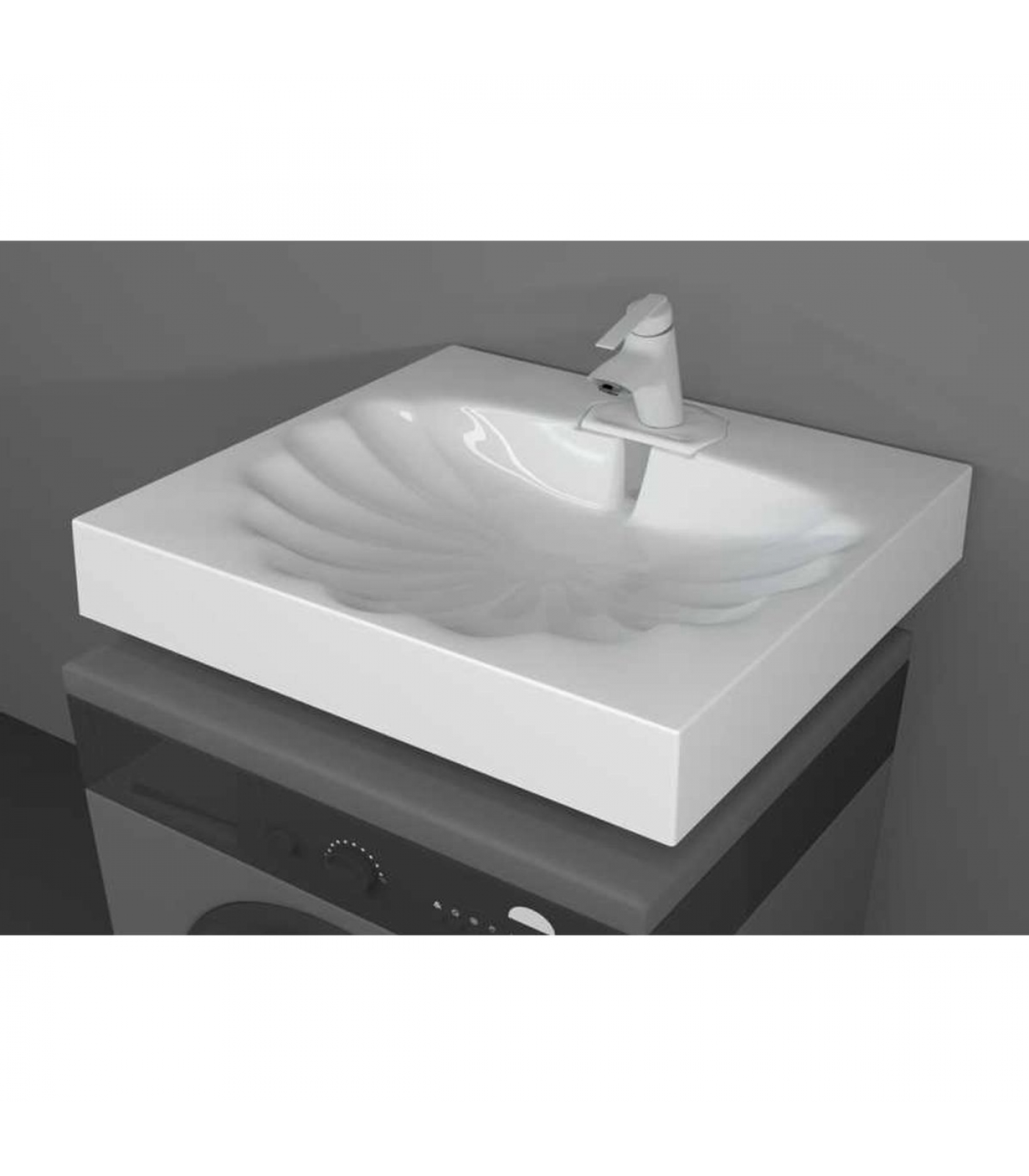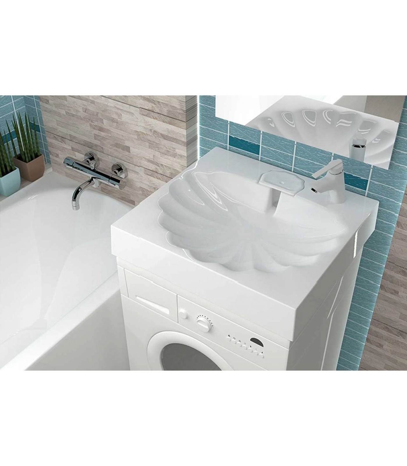 Раковина над стиральной машиной MARKO "АРИЭЛЬ" 60x55x10 с декоративной накладкой-мыльницей 5238600 - форма чаши изделия подобна морской раковине. Оригинальность дизайна раковины удачно вписывается в ЭкоДизайн.