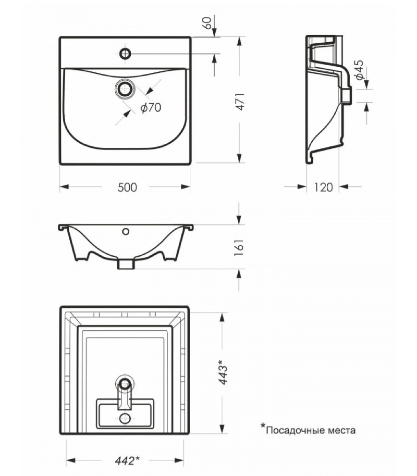 Умывальник BREEZE 50 имеет наиболее универсальную форму с низким бортиком и гармонично впишется в интерьер любой ванной комнаты.
