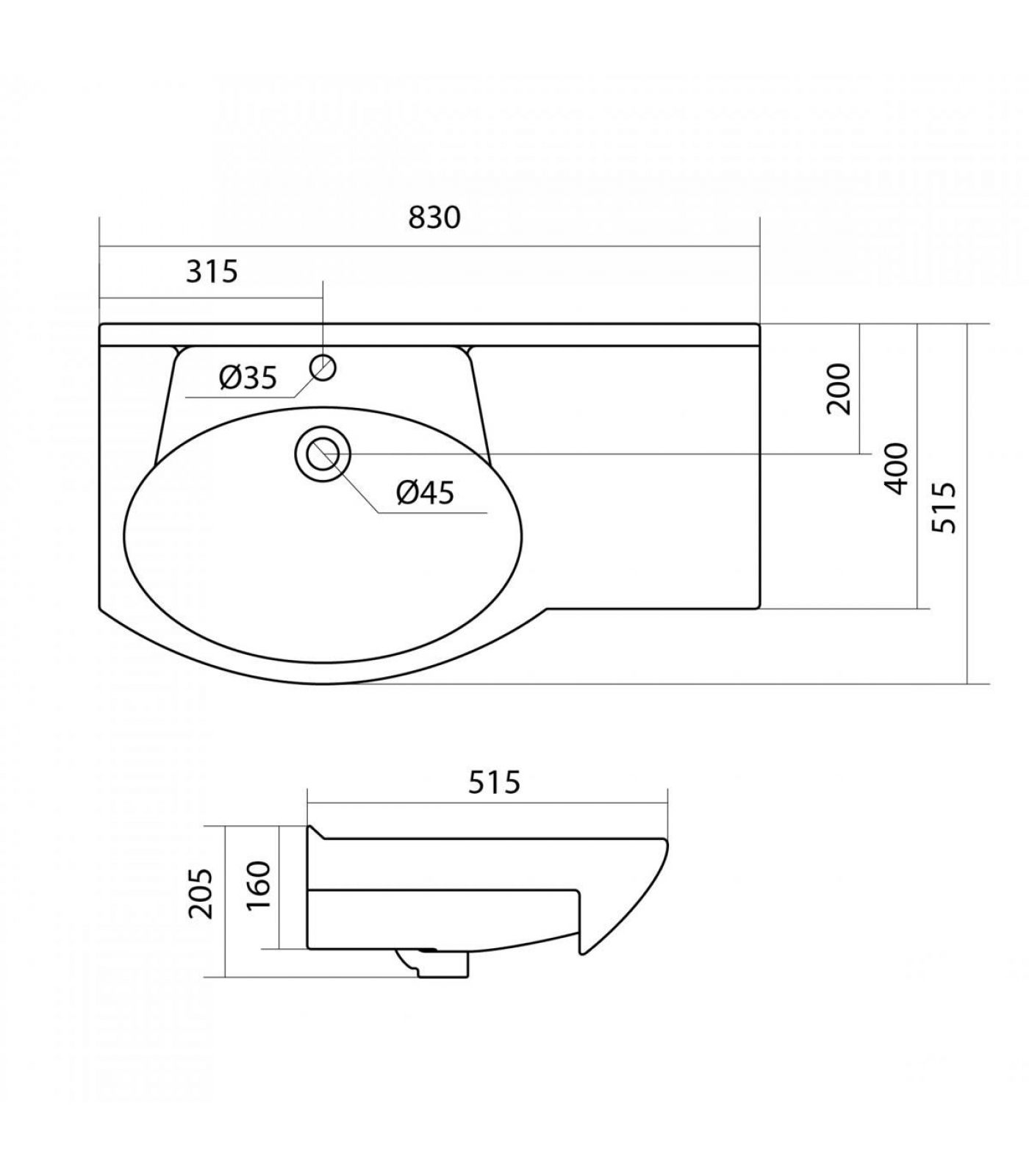 Раковина Santek Коралл 83 левая с правым крылом, накладная на тумбу
