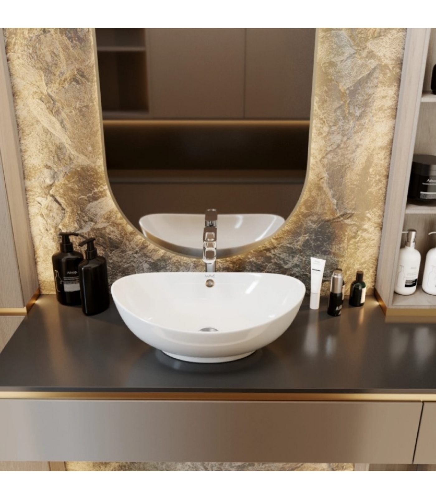 Накладные умывальники WAVE наилучшим образом сочетают в себе эстетичность и практичность.