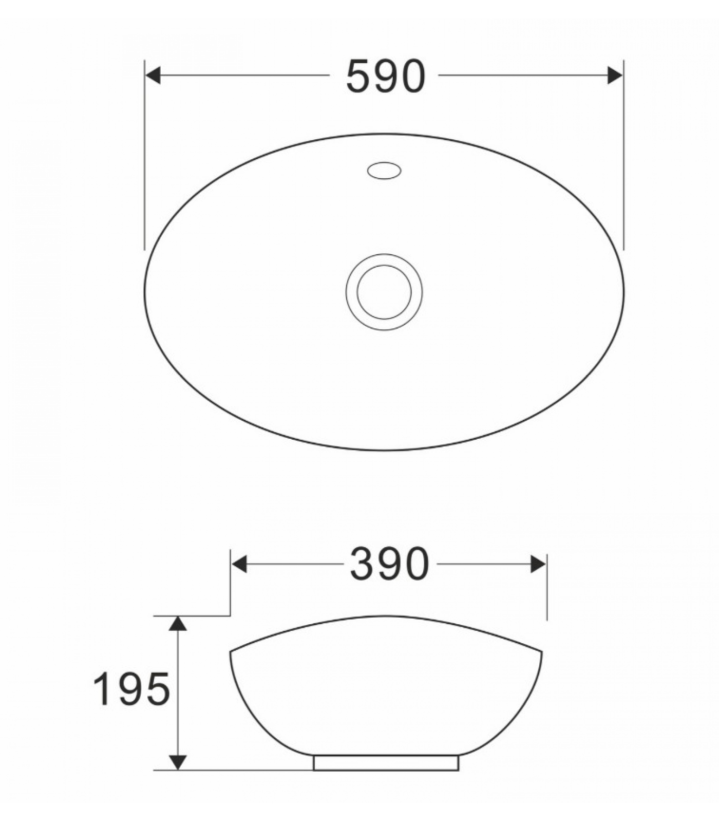 Раковина WAVE Star 590х390х195, накладная на столешницу, овальная, с переливом, белая