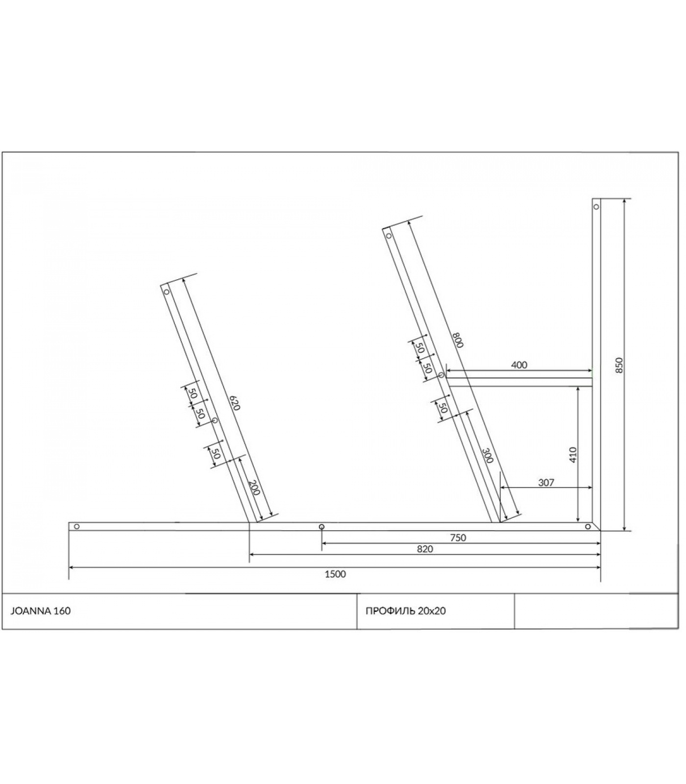 Усиленный каркас JOANNA выполнен из стали, в комплект входит: рама, 3 стойки, шпильки, инструкция по сборке.