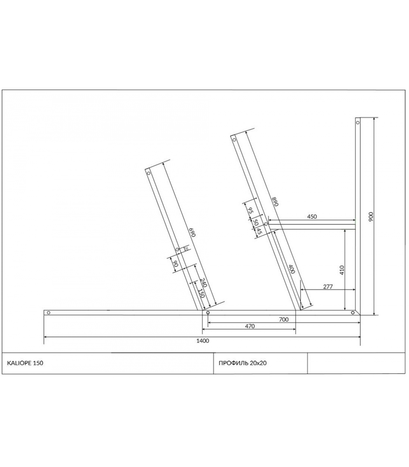 Усиленный каркас KALIOPE выполнен из стали, в комплект входит: рама, 3 стойки, шпильки, инструкция по сборке.