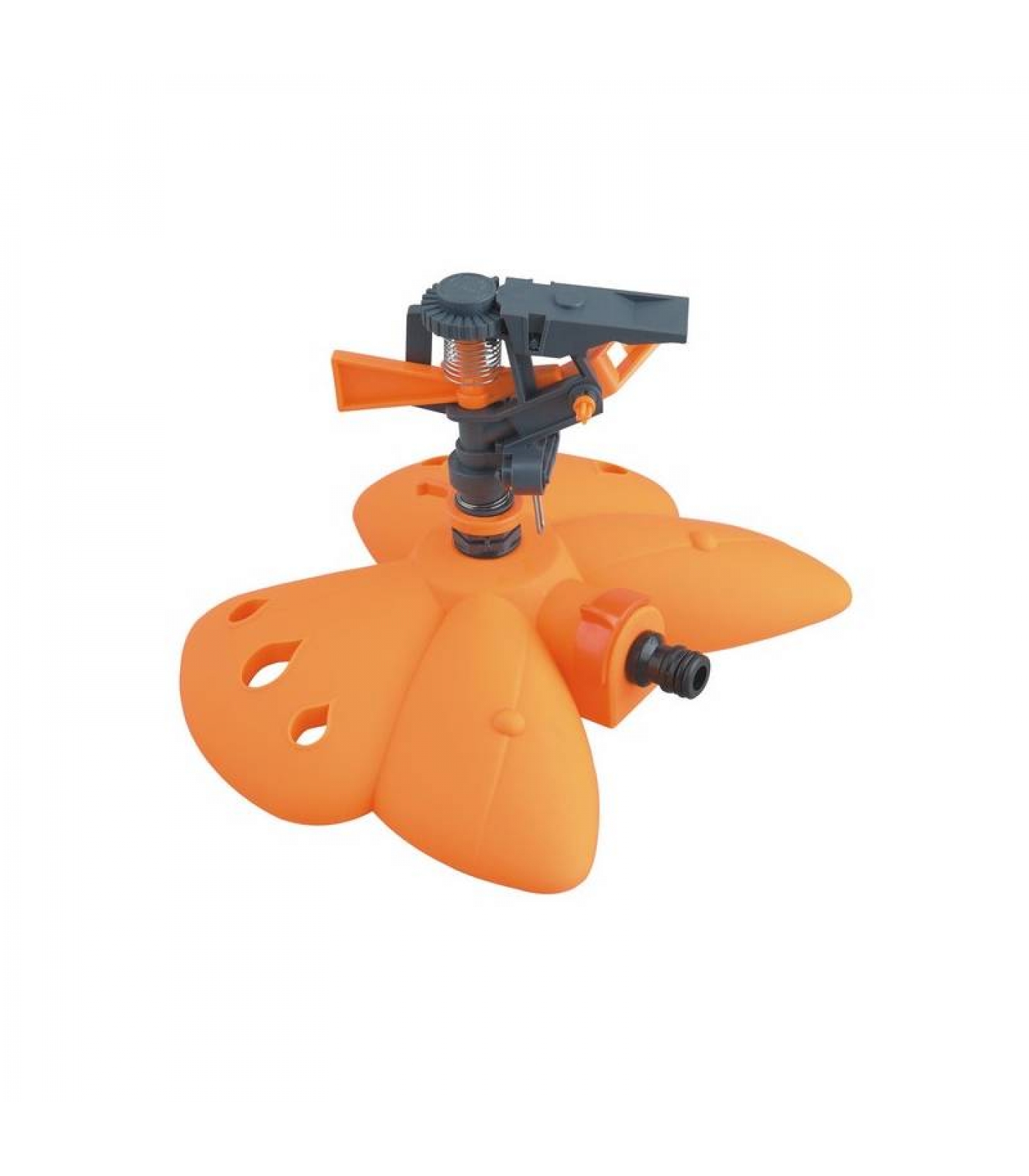 Вращающийся разбрызгиватель Palisad «Бабочка» с 3 лопастями, с регулировкой, используется для орошения газонов и садовых участков. Максимальная площадь полива составляет 58 кв.м. Дальность распыления можно варьировать от 2 до 4,3 м. На каждой лопасти 4 отверстия, обеспечивающие равномерный полив. Основание выполнено в форме бабочки, что придает устройству оригинальный вид.