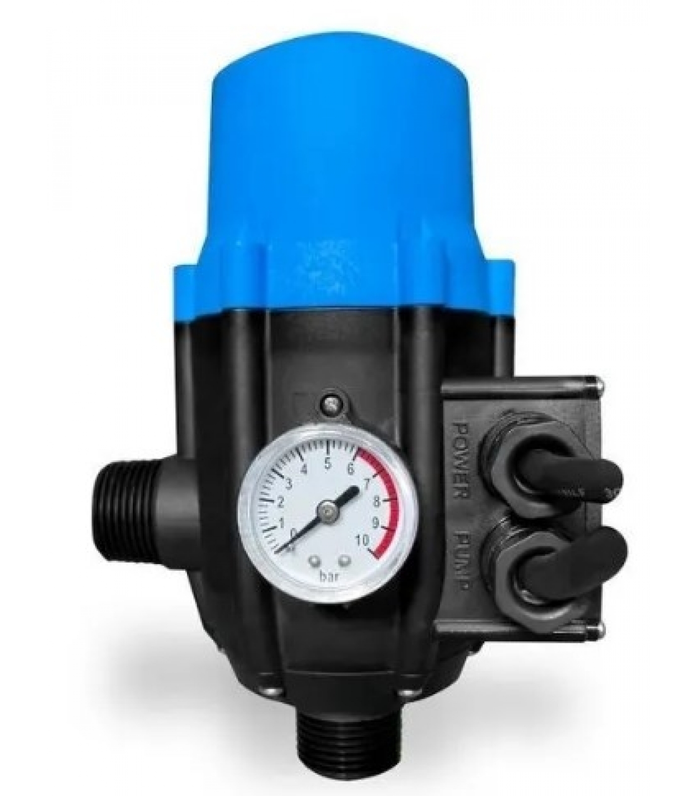 Регулятор автоматически включает и отключает насос при наличии необходимого давления в системе и автоматически выключает насос при возникновении сбоев в подаче воды или работе насоса. Стартовое давление - 1.5 бар. Необходимо наполнить рабочую камеру насоса водой перед подключением насосной автоматики. Регулятор устанавливается в вертикальном положении, необходимо подсоединить входной штуцер регулятора напрямую к выходному штуцеру насоса, а боковой выходной штуцер регулятора к трубопроводу.