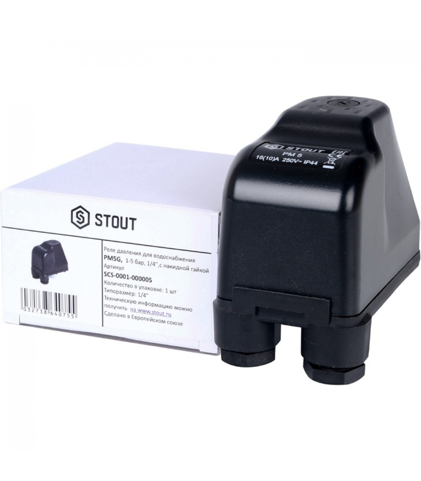STOUT SCS-0001 Реле давления для водоснабжения PM5G, 1-5 бар, 1/4", с накидной гайкой.
