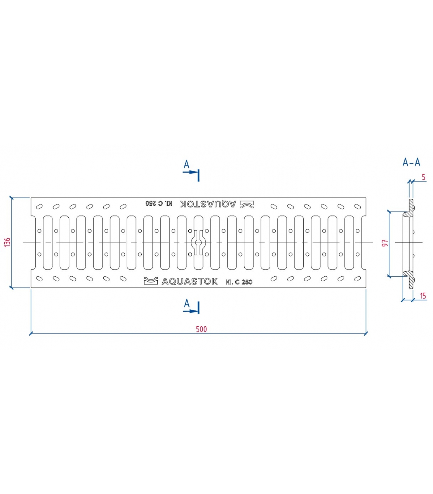 Решетка чугунная щелевая Aquastok Norma DN100, 500*136, класс нагрузки C250