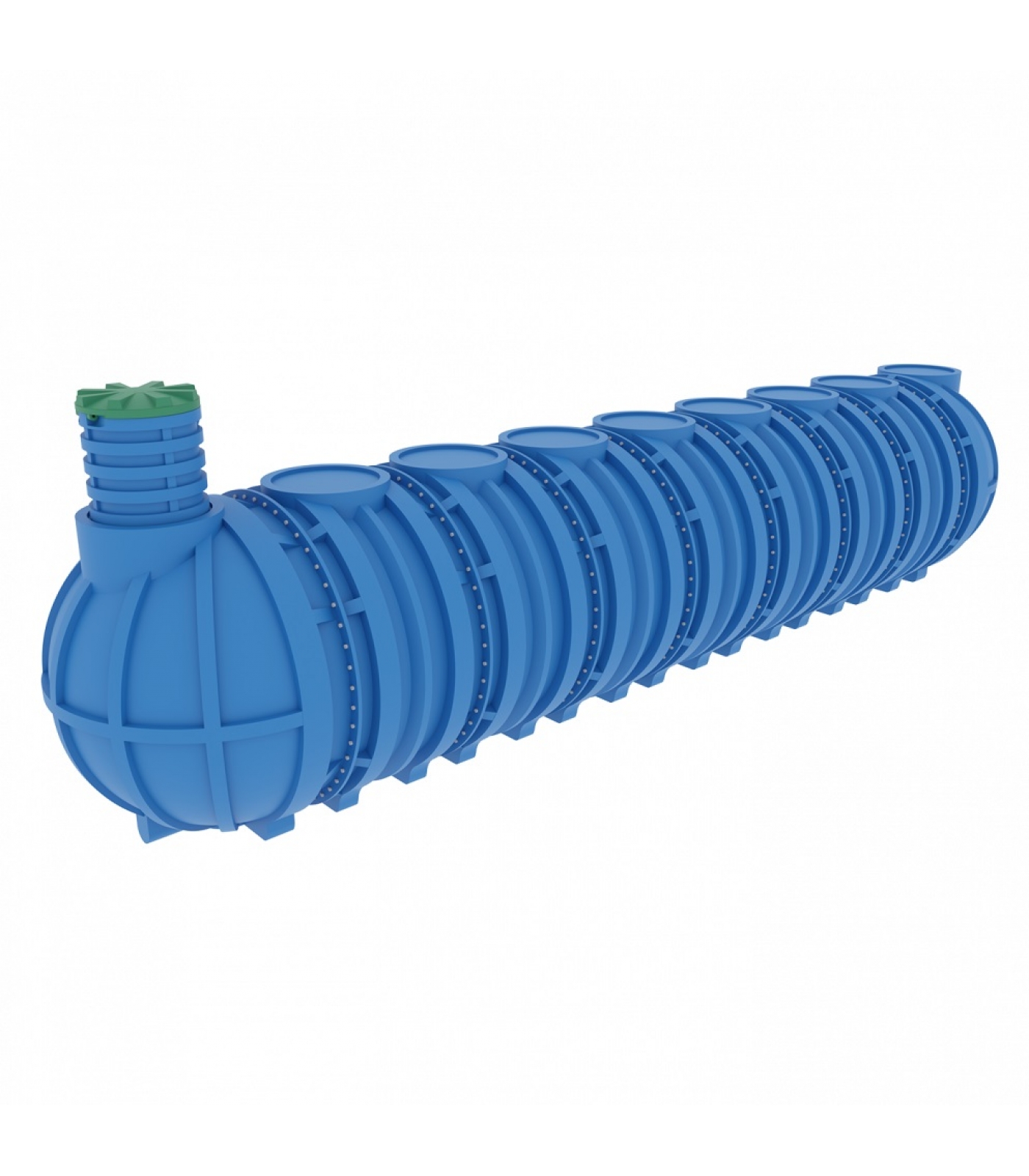 Подземные резервуары предназначены для хранения питьевой воды и прочих жидкостей, выполнены из LLDPE, который не вступает в реакцию с жидкостями и является химически нейтральным материалом. Объем данного резервуара составляет 45 000 литров (45 куб.м). Все резервуары обладают модульной конструкцией, которая позволяет изготавливать емкости до 50 000 литров. Резервуар поставляется клиенту в уже собранном виде.