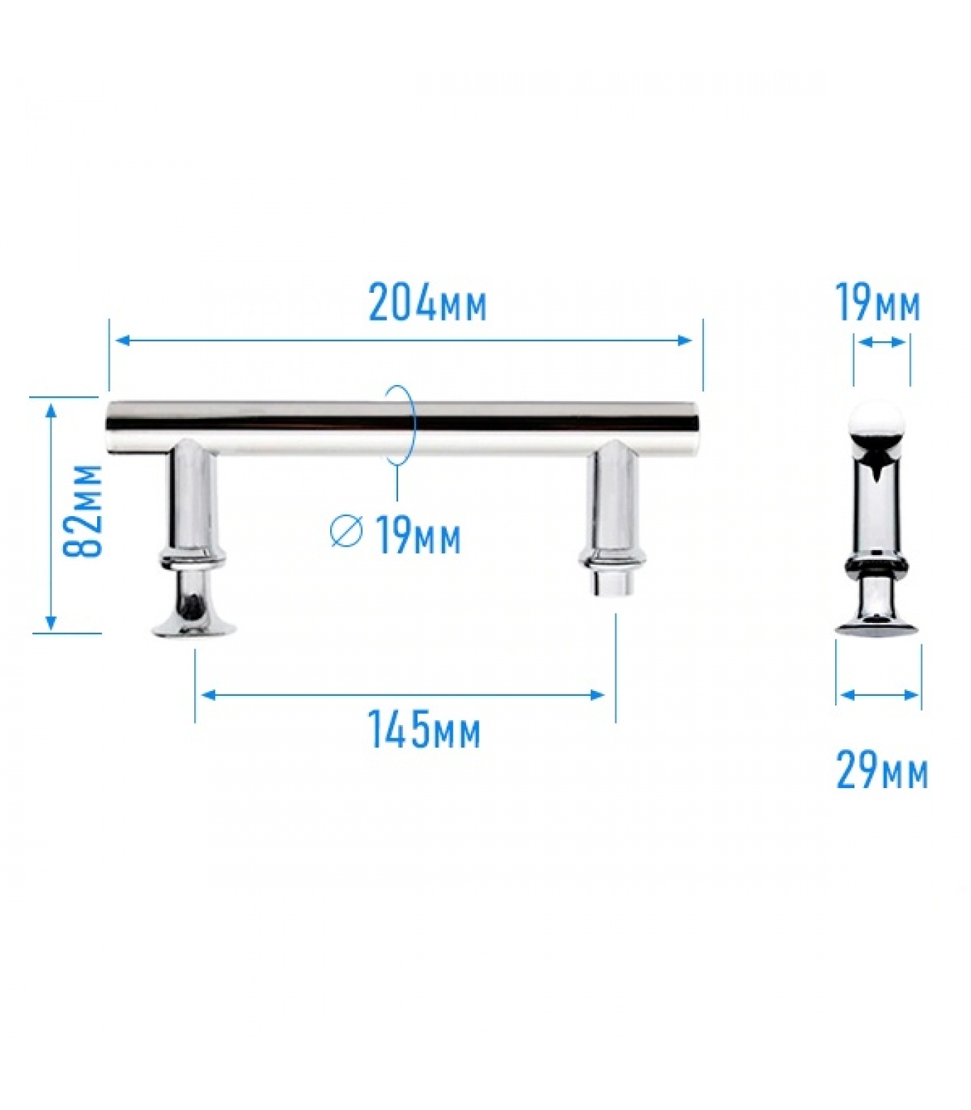 Ручка крепится через 2 отверстия, рассчитана на расстояние между отверстиями — 145 мм.