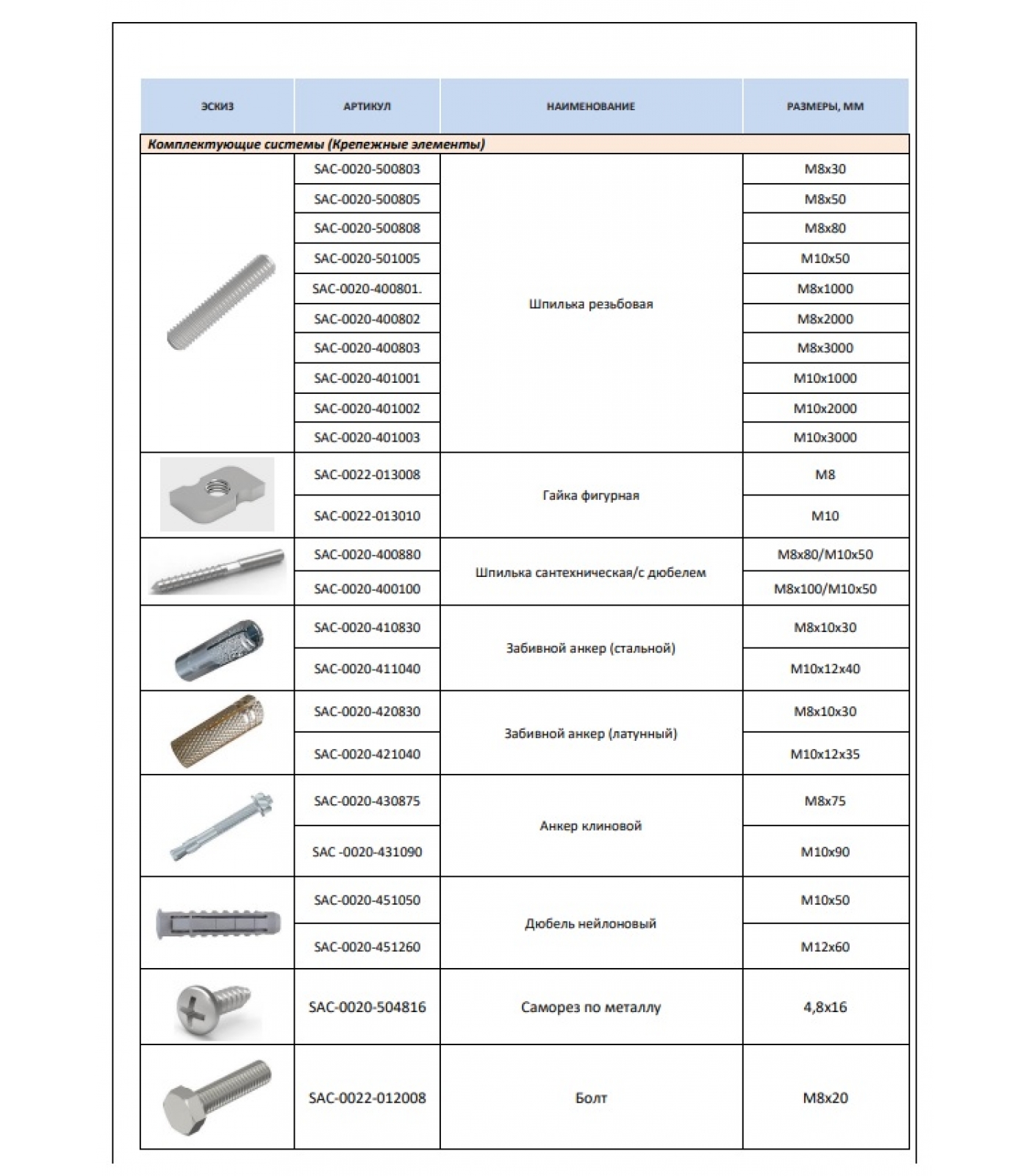 Крепежные изделия (болты, гайки, шайбы, саморезы) предназначены для соединения отдельных элементов в единую систему и удержания в несущей конструкции. Широко применяются в промышленности и строительстве в связке с различными элементами монтажных систем. Обеспечивают быстрое и надежное крепление, выдерживают высокие нагрузки, устойчивы к коррозии благодаря обработке цинком.